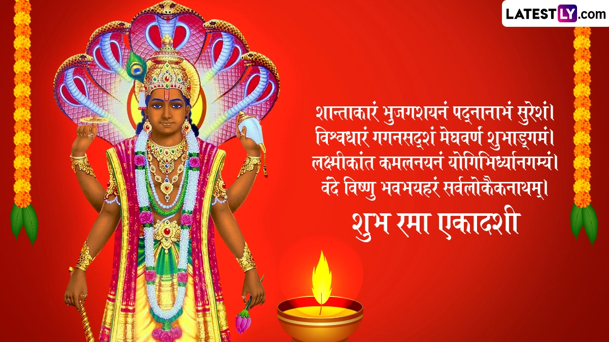 पौराणिक मान्यताओं के अनुसार चतुर्मास का आखिरी एकादशी यानी रमा एकादशी का व्रत कामधेनु गाय को घर में रखने के समान फल प्रदान करती है. इस व्रत के प्रभाव से आर्थिक संकट दूर होता है और व्यक्ति को किसी चीज की कमी नहीं रहती है. ऐसे में इस खास अवसर पर आप इन भक्तिमय हिंदी विशेज, वॉट्सऐप मैसेजेस, कोट्स और फेसबुक ग्रीटिंग्स को भेजकर प्रियजनों से शुभ रमा एकादशी कह सकते हैं.
