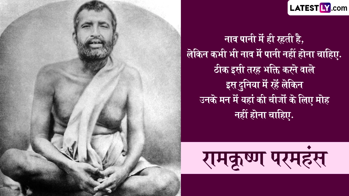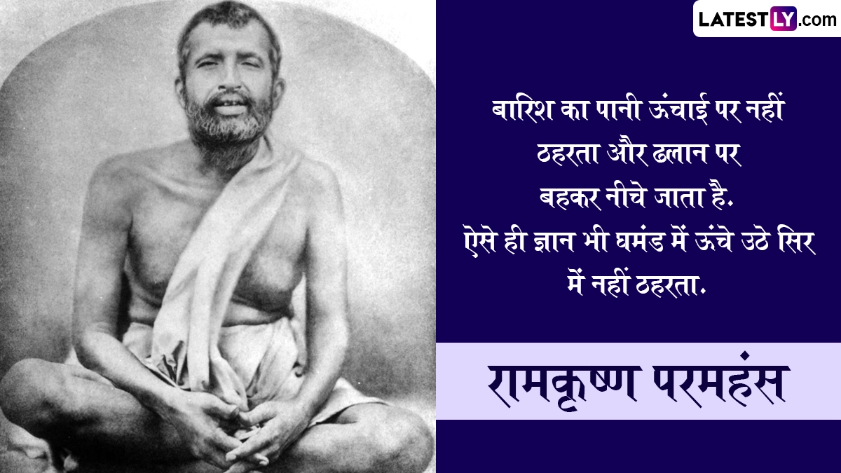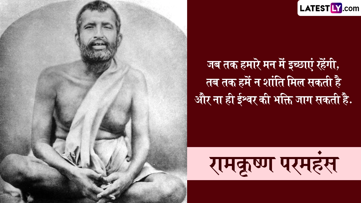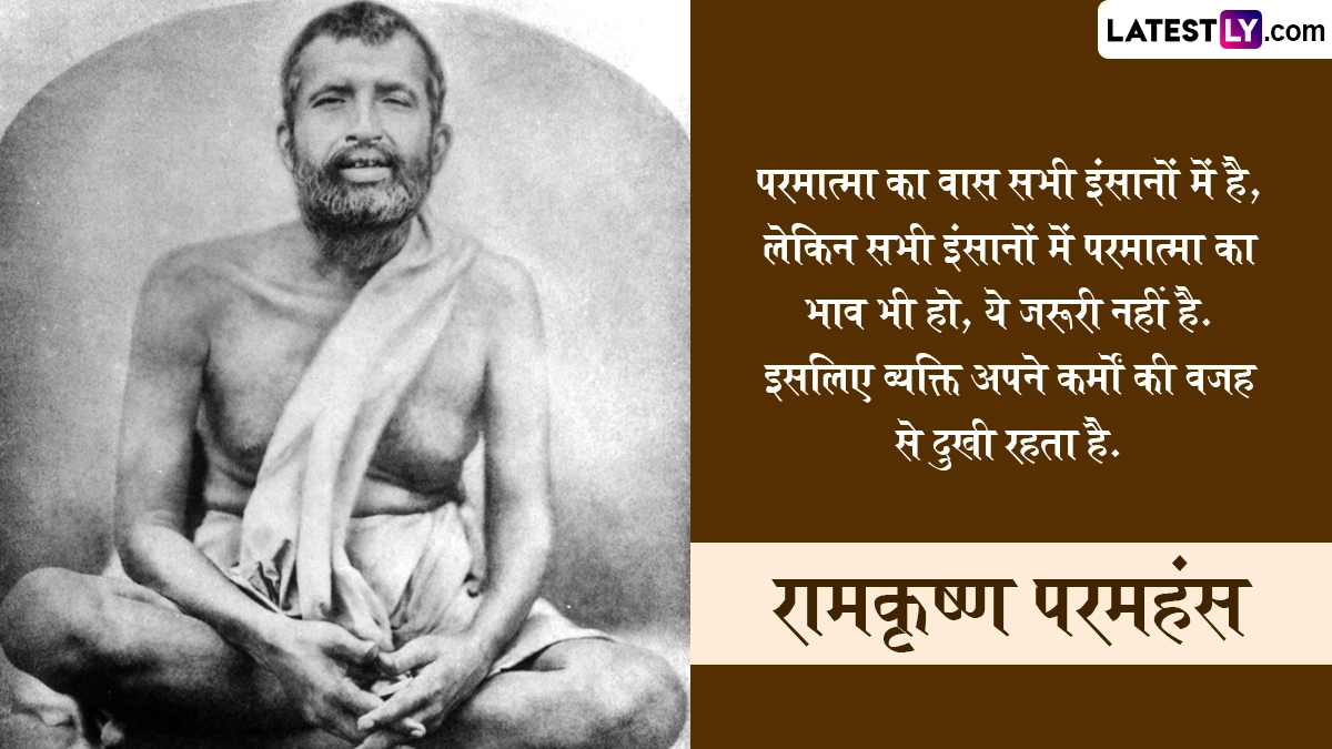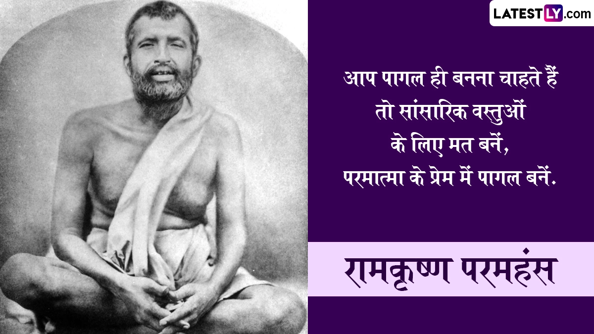 Ramkrishna Paramhans Jayanti 2025 Quotes: भारत देवों की ही नहीं, बल्कि संतों एवं ऋषि-मुनियों की भूमि भी रही है, ऐसे ही एक महान संत थे रामकृष्ण परमहंस (Ramkrishna Paramhans), जिन्हें मां काली (Maa Kali) का अनन्य भक्त कहा जाता है. वे स्वामी विवेकानंद के गुरु भी थे. कुशाग्र बुद्धि वाले स्वामी रामकृष्ण ने सदा से निराकार ईश्वर की उपासना पर जो दिया. उन्हें पुराण, महाभारत, भगवद् गीता और रामायण कंठस्थ थी. उन्होंने आध्यात्मिक, धार्मिक और समाजसुधार संबंधित तमाम उल्लेखनीय कार्य किए. रामकृष्ण परमहंस का जन्म फाल्गुन शुक्ल पक्ष द्वितीया को हुगली (बंगाल) स्थित कामारपुकुर ग्राम में हुआ था. पिता का नाम खुदीराम और मां का नाम चंद्रावती था. उनका मूल नाम गदाधर था. 16 अगस्त 1886 को 50 साल की उम्र में परमहंस जी ने परम समाधि ली. तिथि अनुसार, इस वर्ष 01 मार्च 2025 को रामकृष्ण परमहंस की जयंती मनाई जा रही है. इस विशेष अवसर पर उनके निम्नलिखित प्रभावशाली विचारों को व्हाट्सएप, इंस्टाग्राम या फेसबुक पर भेजकर अपनों को शुभकामनाएं दे सकते हैं.