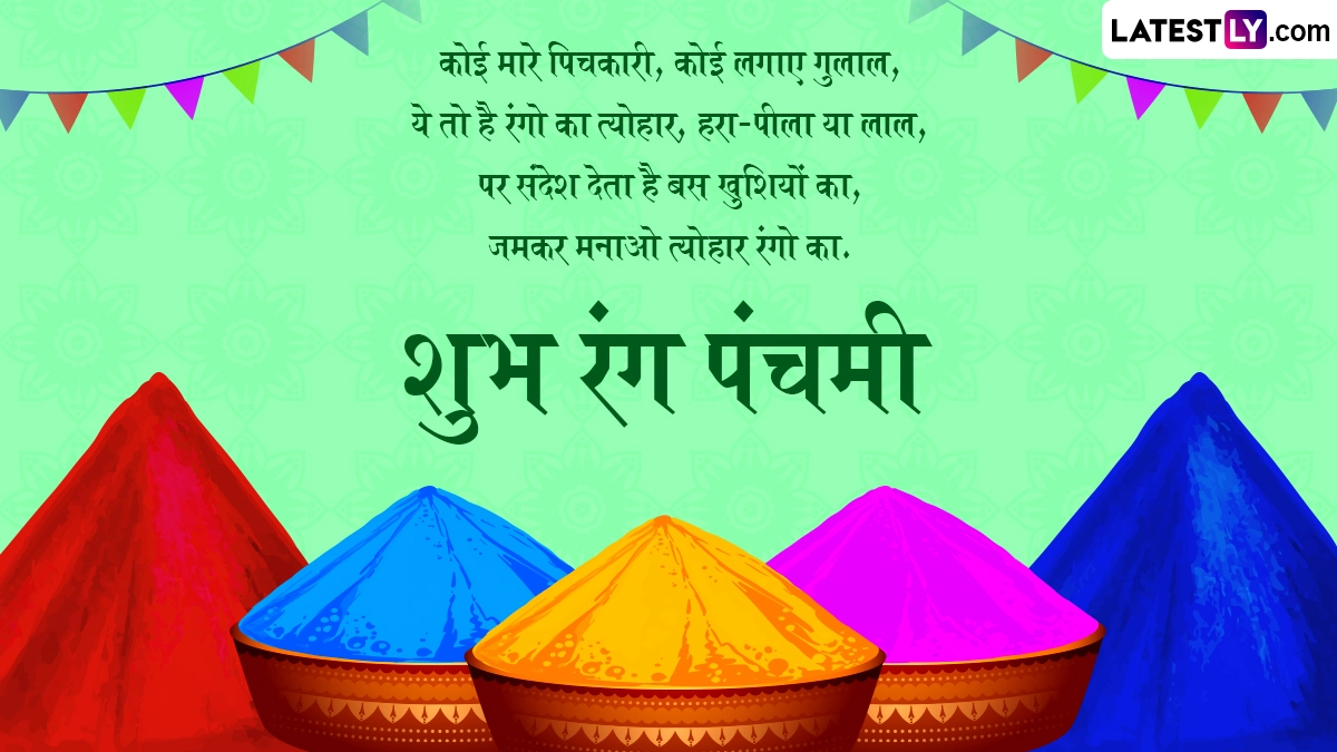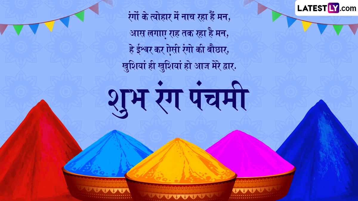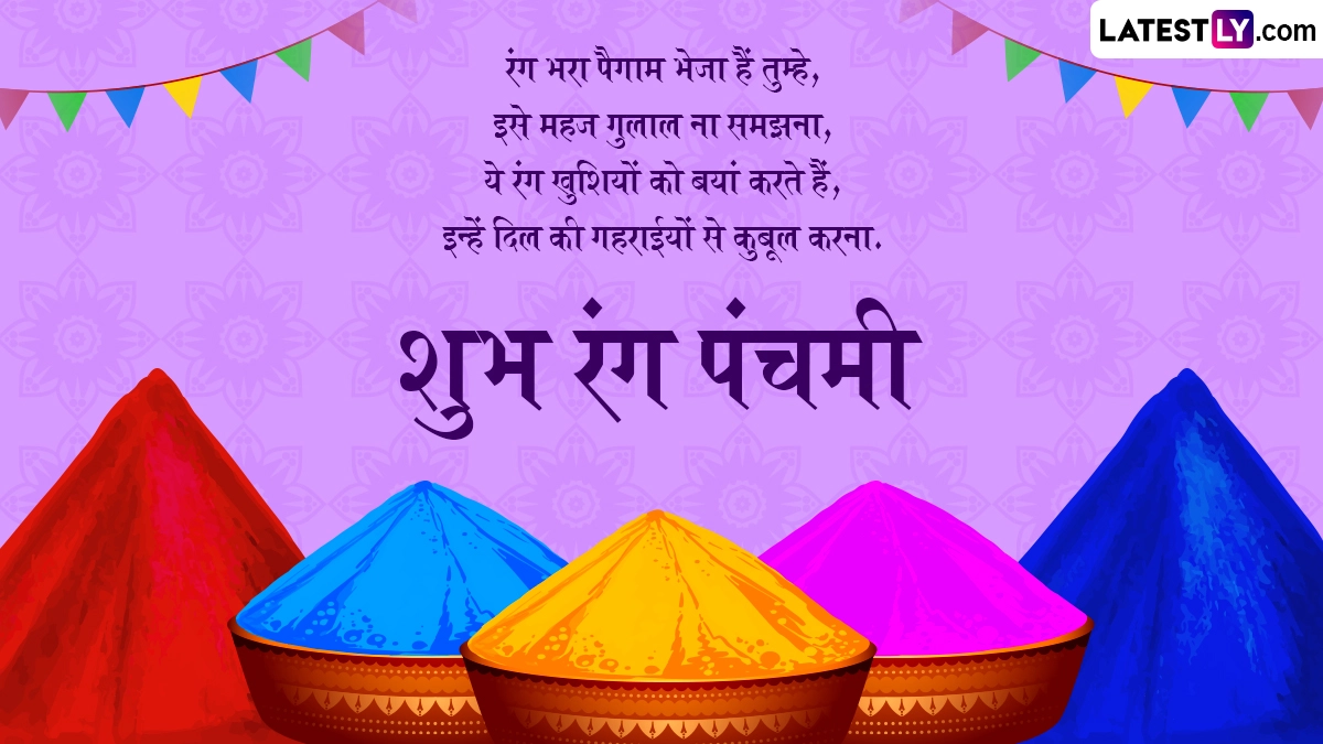 रंग पंचमी पर राधा-कृष्ण की पूजा करने के अलावा उन्हें लाल या गुलाबी रंग के गुलाल को अर्पित करना काफी शुभ माना जाता है. राधा-कृष्ण के अलावा अन्य देवी-देवताओं को भी गुलाल अर्पित कर अपने प्रियजनों को शुभकामनाएं दी जाती हैं. ऐसे में इस खास अवसर पर आप भी इन हिंदी विशेज, वॉट्सऐप मैसेजेस, कोट्स, फेसबुक ग्रीटिंग्स के जरिए अपने प्रियजनों को शुभ रंग पंचमी कह सकते हैं.