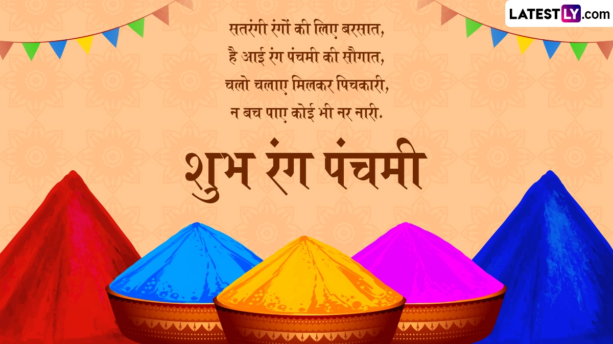 Rang Panchami 2024 Wishes in Hindi: हिंदू धर्म के महत्वपूर्ण त्योहारों में शुमार होली (Holi) को धूमधाम से मनाए जाने के ठीक पांच दिन बाद रंग पंचमी (Rang Panchami) का त्योहार मनाया जाता है. रंग पंचमी के पर्व को महाराष्ट्र (Maharashtra), मध्य प्रदेश (Madhya Pradesh) और उत्तर प्रदेश (Uttar Pradesh) में बहुत धूमधाम से मनाया जाता है. इस पर्व से जुड़ी प्रचलित मान्यता के अनुसार, रंग पंचमी पर श्रद्धा और भक्तिभाव के साथ देवी-देवताओं की पूजा करने पर मनोवांछित फलों की प्राप्ति होती है. रंग पंचमी के दिन भगवान श्रीकृष्ण (Bhagwan Krishna) और राधा रानी (Radha Rani) की पूजा का विधान है. हिंदू पंचांग के अनुसार, चैत्र मास के कृष्ण पक्ष की पंचमी तिथि को रंग पंचमी का पर्व मनाया जाता है. ग्रेगोरियन कैलेंडर के अनुसार, इस साल 30 मार्च 2024 को रंग पंचमी मनाई जा रही है.