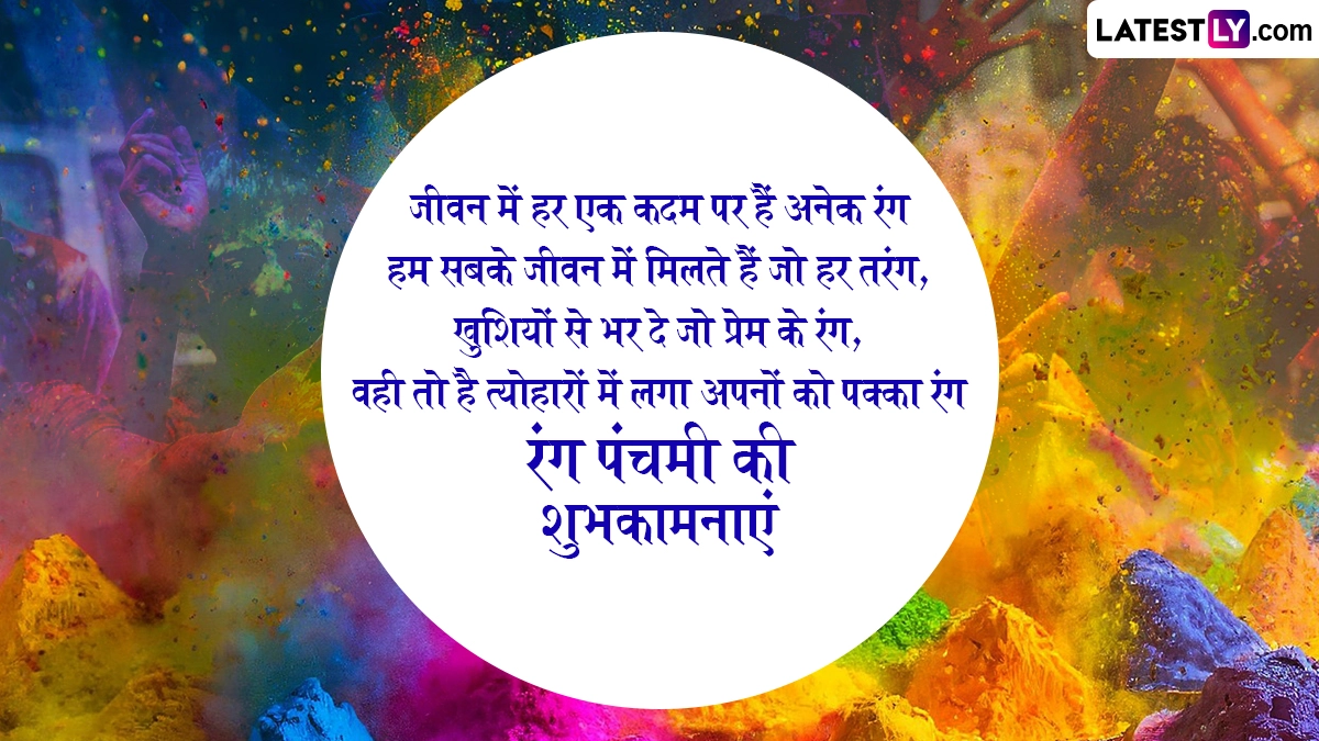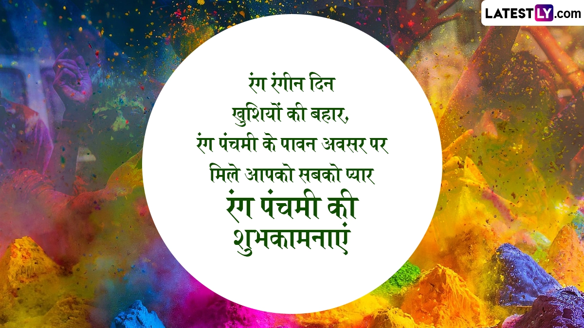 Rang Panchami 2025 Wishes: पूर्णिमांत हिन्दू पंचांग के अनुसार चैत्र मास की कृष्ण पक्ष पंचमी को रंग पंचमी (Rang Panchami) के रूप में मनाया जाता है. इस साल रंग पंचमी 19 मार्च को मनाया जा रहा है. भारत में कुछ स्थानों पर रंग पंचमी के दिन होली खेली जाती है. रंग पंचमी आमतौर पर भारत के बाकी हिस्सों में होली के पांच दिन बाद आती है. मथुरा और वृंदावन के कुछ मंदिरों में भी रंग पंचमी के दिन ही होली का समापन होता है. रंग पंचमी का त्योहार उज्जैन सहित मध्य प्रदेश के विभिन्न इलाकों में धूमधाम से मनाया जाता है, जिसके तहत बड़ी संख्या में हुरियारों (होली खेलने वाले लोग) की टोलियां होली खेलने के लिए सड़कों पर निकलती हैं. यहां तक कि नगर निगम के वाहनों से बड़े-बड़े पाइपों के जरिए हुरियारों पर सुगंधित रंग भी डाला जाता है.