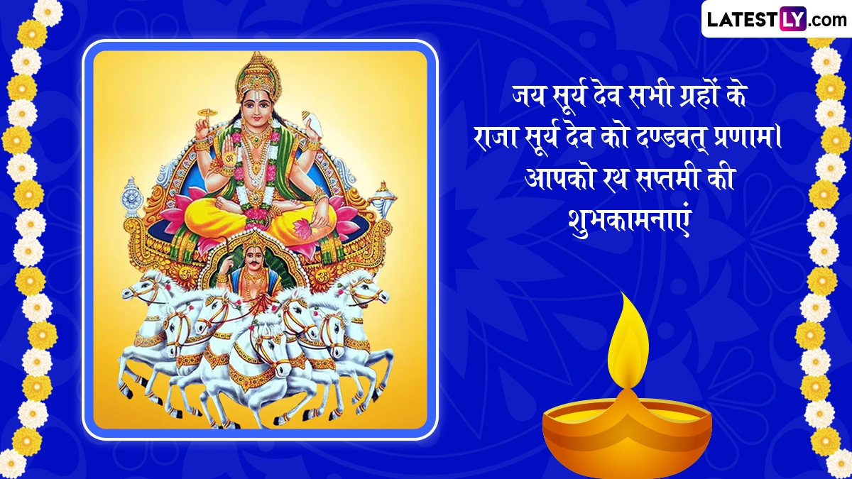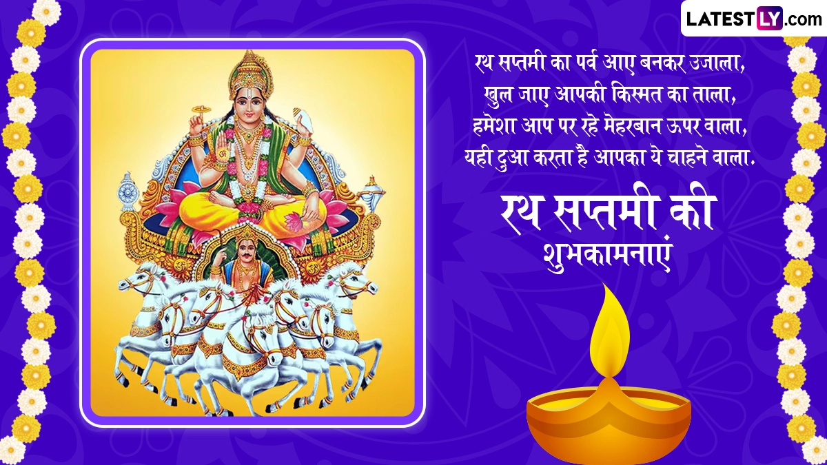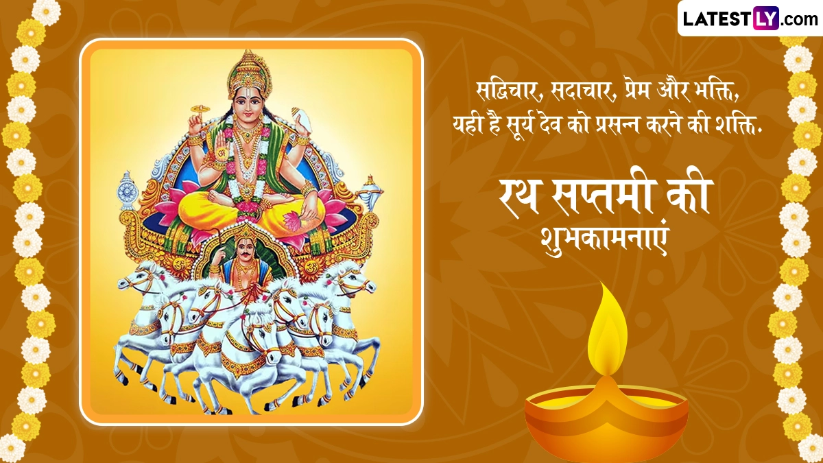 Ratha Saptami 2025 Wishes: भगवान सूर्य (सूर्य देव) को समर्पित एक शुभ त्योहार रथ सप्तमी, मंगलवार, 4 फरवरी, 2025 को मनाया जा रहा है. यह अवसर हिंदू कैलेंडर में एक महत्वपूर्ण दिन है, जिसे भक्ति और श्रद्धा के साथ मनाया जाता है. यह दिन विशेष रूप से माघ महीने में शुक्ल पक्ष सप्तमी (चन्द्रमा के सातवें दिन) से जुड़ा हुआ है. इसे माघ सप्तमी (Magh Saptami) सूर्य जयंती (Surya Jayanti) और अचला सप्तमी (Achala Saptami) के नाम से भी जाना जाता है. ऐसा माना जाता है कि इस दिन भगवान सूर्य ने दुनिया को रोशन करना शुरू किया था, जिससे यह उनका प्रतीकात्मक जन्मदिन बन गया. रथ सप्तमी को दान-पुण्य और आध्यात्मिक साधना के लिए सूर्य ग्रहण जितना ही पवित्र और महत्वपूर्ण माना जाता है. माना जाता है कि इस दिन भगवान सूर्य की पूजा करने से अपार आध्यात्मिक लाभ होता है. शास्त्रों के अनुसार रथ सप्तमी पर प्रार्थना करने और व्रत रखने से व्यक्ति को वर्तमान और पिछले जन्मों में, कर्मों, शब्दों या विचारों के माध्यम से, जाने-अनजाने में किए गए सभी प्रकार के पापों का प्रायश्चित करने में मदद मिलती है. यह भी पढ़ें: Ratha Saptami 2025 HD Images: हैप्पी रथ सप्तमी! प्रियजनों संग शेयर करें ये WhatsApp Stickers, GIF Greetings, Photos SMS और वॉलपेपर्स