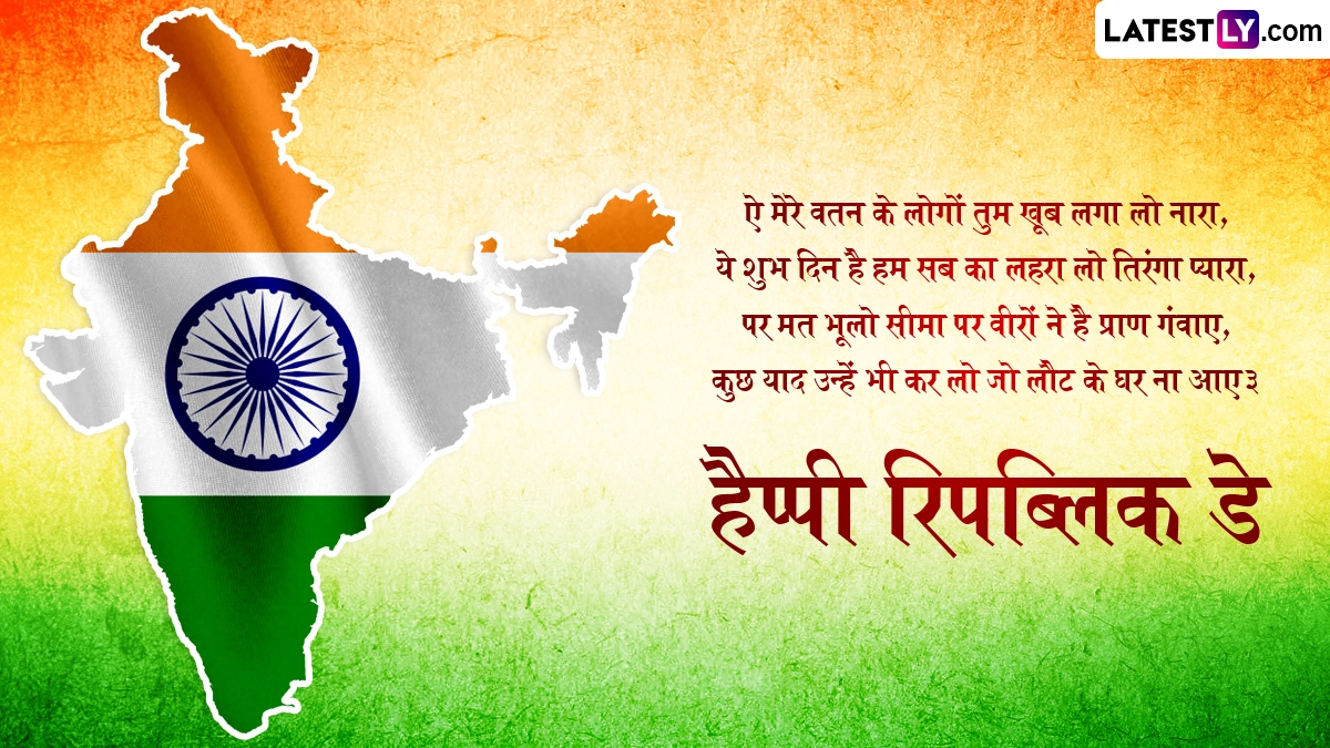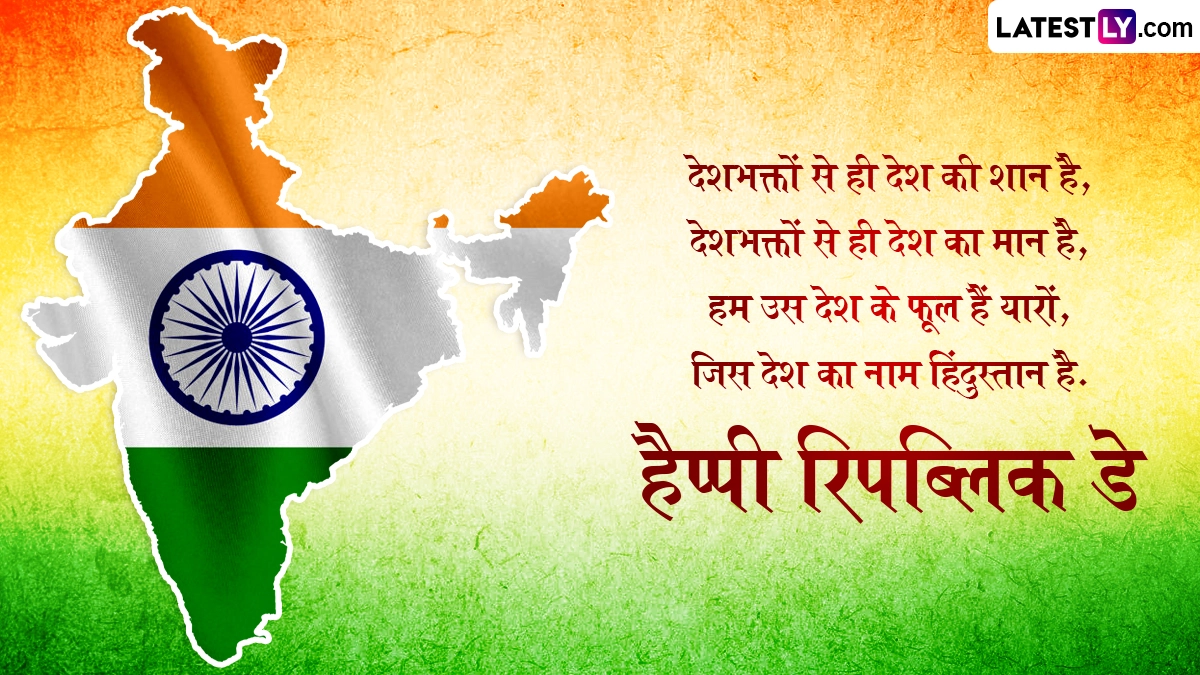 गणतंत्र दिवस का जश्न मनाने के लिए कई रंगारंग व सांस्कृतिक कार्यक्रमों का आयोजन किया जाता है. इस दिन तिरंगा फहराकर लोग इसकी आन-बान और शान को सलाम करते हैं, साथ ही एकजुट होकर एक संप्रभु राष्ट्र की भावना और आत्मा का जश्न मनाते हैं. ऐसे में 77वें गणतंत्र दिवस के इस खास अवसर पर आप इन हिंदी मैसेजेस, शायरी, वॉट्सऐप विशेज, जीआईएफ ग्रीटिंग्स, फोटो एसएमएस के जरिए अपनों से हैप्पी रिपब्लिक डे कह सकते हैं.