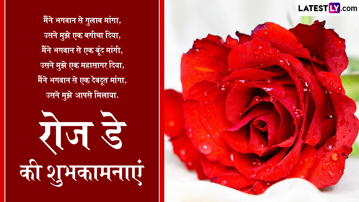 लाल गुलाब को हमेशा से ही गहरे प्रेम और जुनून की निशानी माना गया है. प्रेमी जोड़े अक्सर रोज डे पर एक-दूसरे को लाल गुलाब का गुलदस्ता देकर अपने दिल की बात कहते हैं. इसके साथ ही आज के डिजिटल युग में लोग रोमांटिक शायरी, कस्टमाइज्ड गिफ्ट्स के जरिए भी इस दिन को सेलिब्रेट करते हैं. ऐसे में आप इन रोमांटिक हिंदी विशेज, शायरी, वॉट्सऐप मैसेजेस, जीआईएफ ग्रीटिंग्स के जरिए रोज डे की शुभकामनाएं दे सकते हैं.