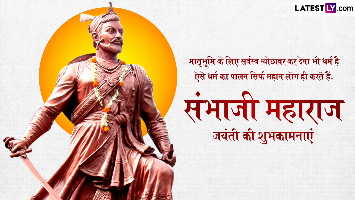 पिता छत्रपति शिवाजी महाराज के निधन के बाद जब संभाजी महाराज सत्ता में आए तभी से उन्होंने मुगलों से बैर लेना शुरू कर दिया. उन्होंने बुरहानपुर पर हमला करके मुगल सेना का पस्त कर दिया था. महज 32 साल की उम्र में मुगल बादशाह औरंगजेब ने उनकी हत्या करवा दी थी. एक महान योद्धा, विद्वान और सच्चे देशभक्त के तौर पर इतिहास के पन्नों में अपना नाम दर्ज कराने वाले छत्रपति संभाजी महाराज की जयंती पर आप इन हिंदी विशेज, कोट्स, वॉट्सऐप मैसेजेस, फेसबुक ग्रीटिंग्स के जरिए शुभकामनाएं दे सकते हैं.
