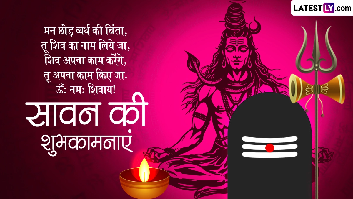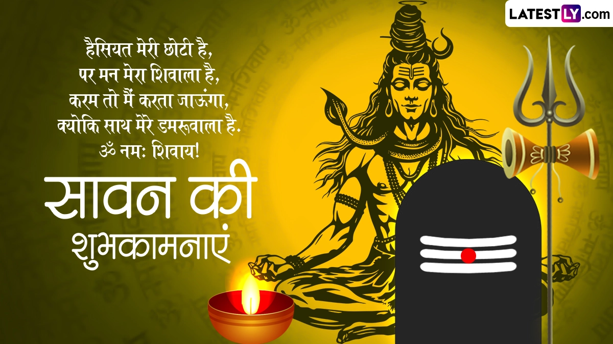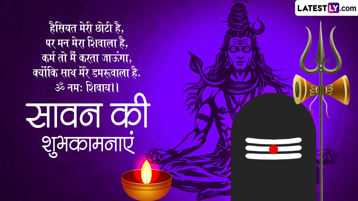 वैसे तो पूरा सावन का महीना भगवान शिव को समर्पित है, इसलिए हर कोई उनकी भक्ति में सरोबार नजर आता है. भक्त व्रत, उपवास और पूजा-पाठ के जरिए महादेव को प्रसन्न करने की पूरी कोशिश करते हैं. इसके साथ ही सावन मास की शुरुआत होते ही एक-दूसरे को बधाई भी देते हैं. ऐसे में आप भी इस खास अवसर पर इन हिंदी विशेज, कोट्स, वॉट्सऐप मैसेजेस, जीआईएफ ग्रीटिंग्स को भेजकर अपनों को सावन की शुभकामनाएं दे सकते हैं.
