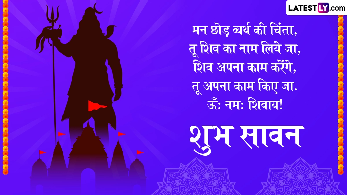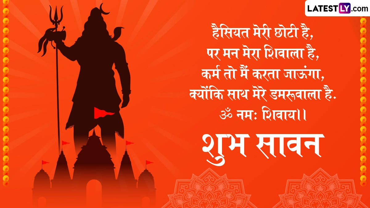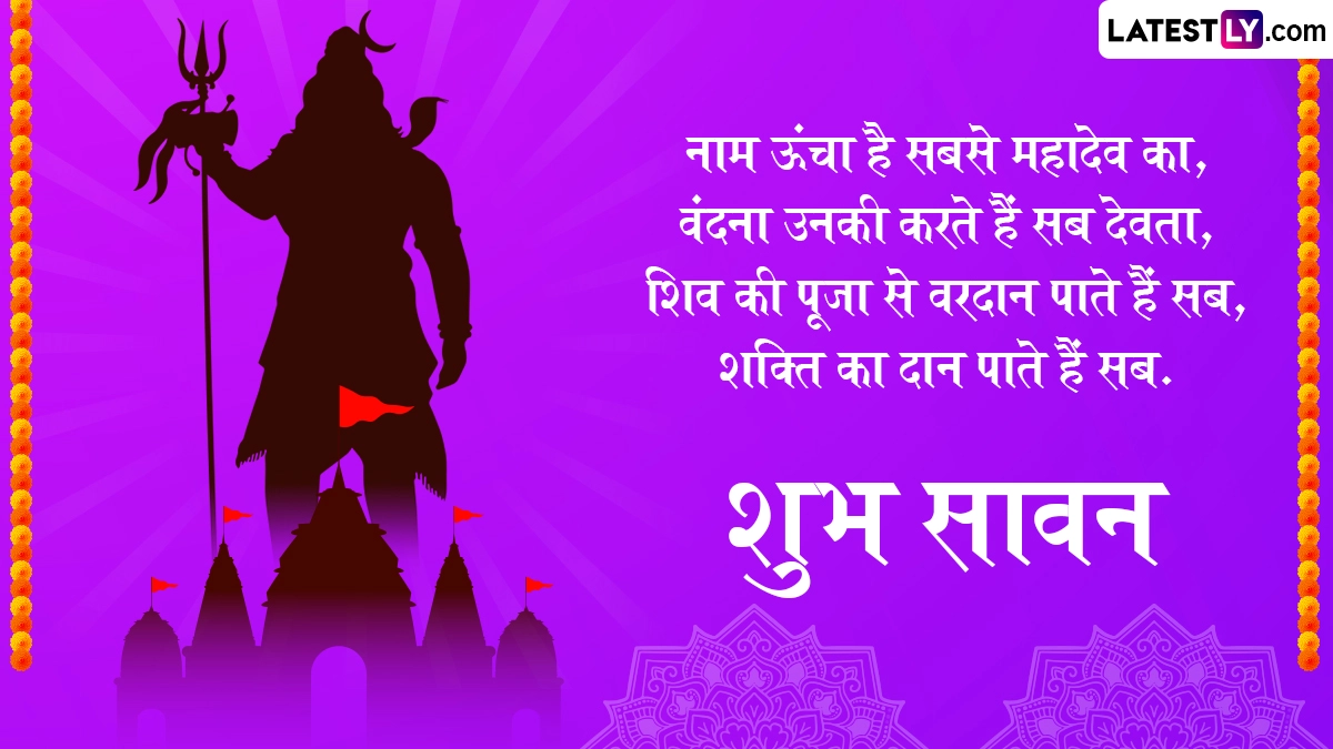 Sawan 2025 Messages in Hindi: देवों के देव महादेव के भक्त वैसे तो हर दिन उनकी उपासना करते हैं और महादेव अपने भक्तों की थोड़ी सी भक्ती से प्रसन्न होकर उनकी झोली खुशियों से भर देते हैं, लेकिन सावन मास की बात ही निराली है. सावन मास भगवान शिव को अत्यंत प्रिय है, इसलिए इसका तमाम शिव भक्तों को बेसब्री से इंतजार रहता है. सावन आते ही हर किसी पर भगवान शिव की भक्ति का रंग चढ़ जाता है और हर कोई उनकी भक्ति में सराबोर हो जाता है. इस साल सावन महीने की शुरुआत 11 जुलाई 2025 से हो रही है, जबकि इस महीने का समापन 9 अगस्त 2025 को सावन पूर्णिमा के साथ होगा. दरअसल, सावन के पूरे महीने में देशभर के तमाम शिव मंदिरों (Shiv Temples) में भक्तों का सैलाब उमड़ता है. शिवालयों में देवों के देव महादेव की विशेष पूजा-अर्चना की जाती है. शिवलिंग (Shivling) का जलाभिषेक करने के साथ ही उस पर बिल्वपत्र, धतूरा, भांग, गंगाजल, दूध, भस्म, शहद इत्यादि अर्पित किए जाते हैं.