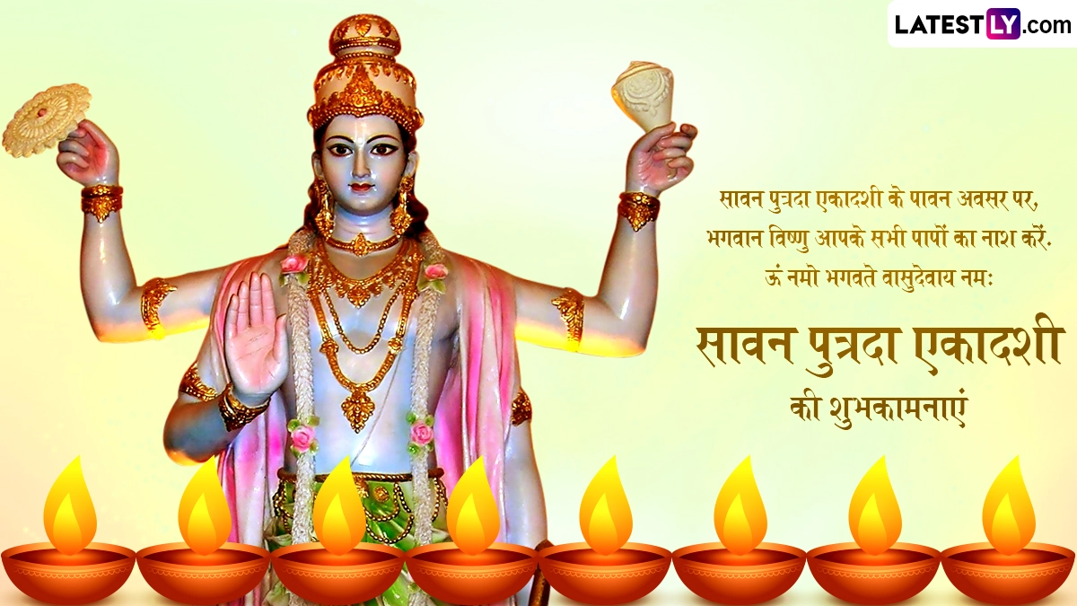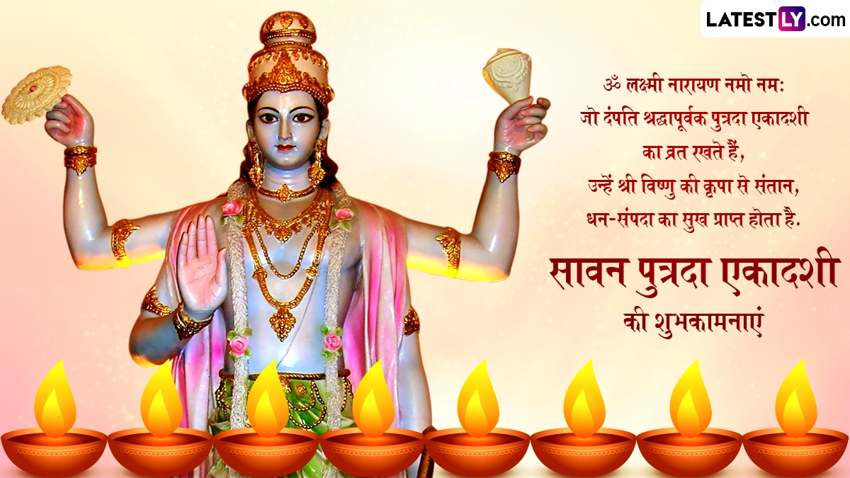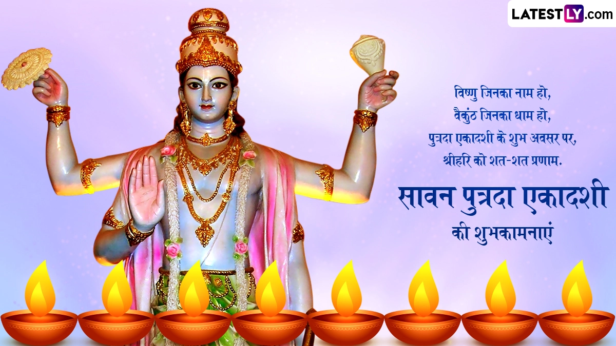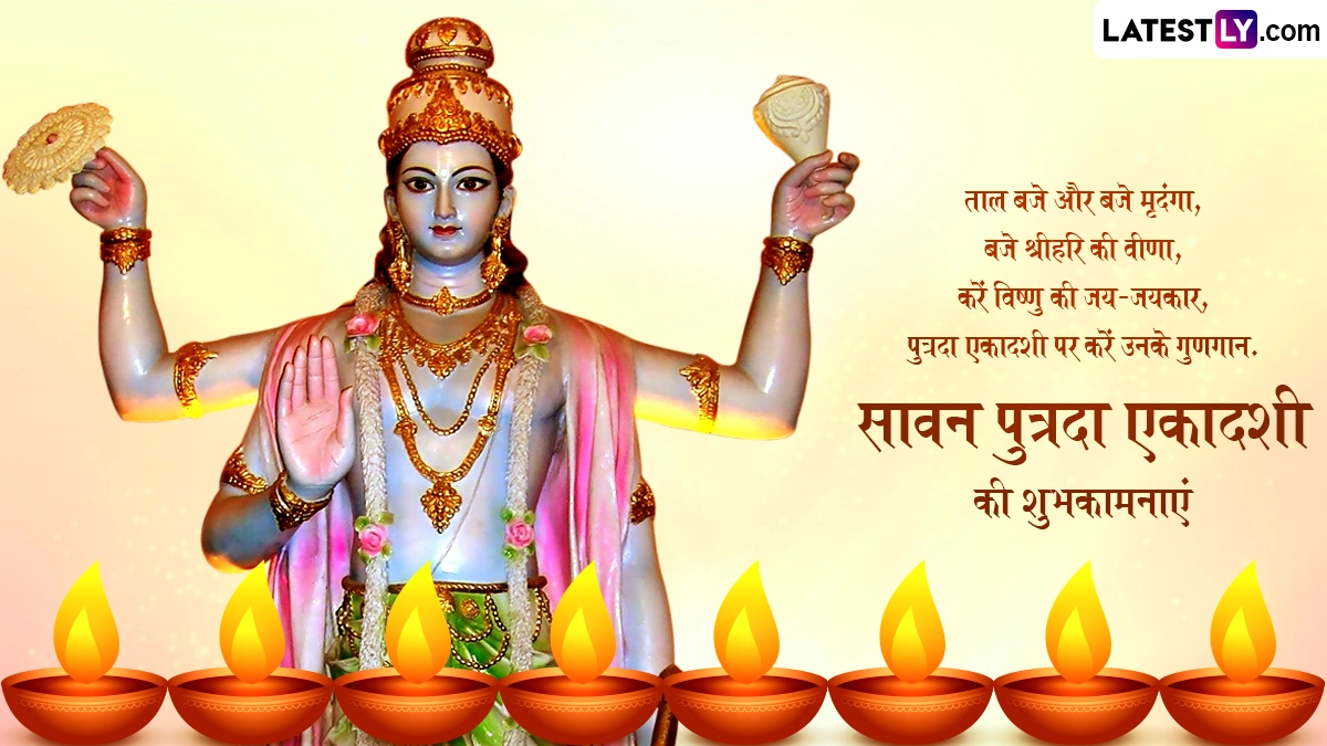 Sawan Putrada Ekadashi 2024 Wishes in Hindi: सावन का पावन महीना (Sawan Month) चल रहा है और हर कोई भगवान शिव (Bhagwan Shiv) की भक्ति में सराबोर है, जबकि इस साल 16 अगस्त 2024 को सावन मास की पुत्रदा एकादशी (Sawan Putrada Ekadashi) मनाई जा रही है. सावन महीने में पड़ने की वजह से इस एकादशी का महत्व और ज्यादा बढ़ जाता है. दरअसल, साल में दो बार पुत्रदा एकादशी (Putrada Ekadashi) आती है, पहली पौष मास की पुत्रदा एकादशी और दूसरी सावन मास की पुत्रदा एकादशी. ऐसी मान्यता है कि जो दंपत्ति संतान सुख से वंचित हैं या फिर जिन्हें विवाह के काफी समय बाद भी संतान की प्राप्ति नहीं हुई है, उन्हें सावन पुत्रदा एकादशी का व्रत जरूर करना चाहिए. पौराणिक कथाओं के अनुसार, सावन पुत्रदा एकादशी का व्रत और भगवान विष्णु की पूजा करने से संतान दोष मिटता है और उसे संतान की प्राप्ति होती है.