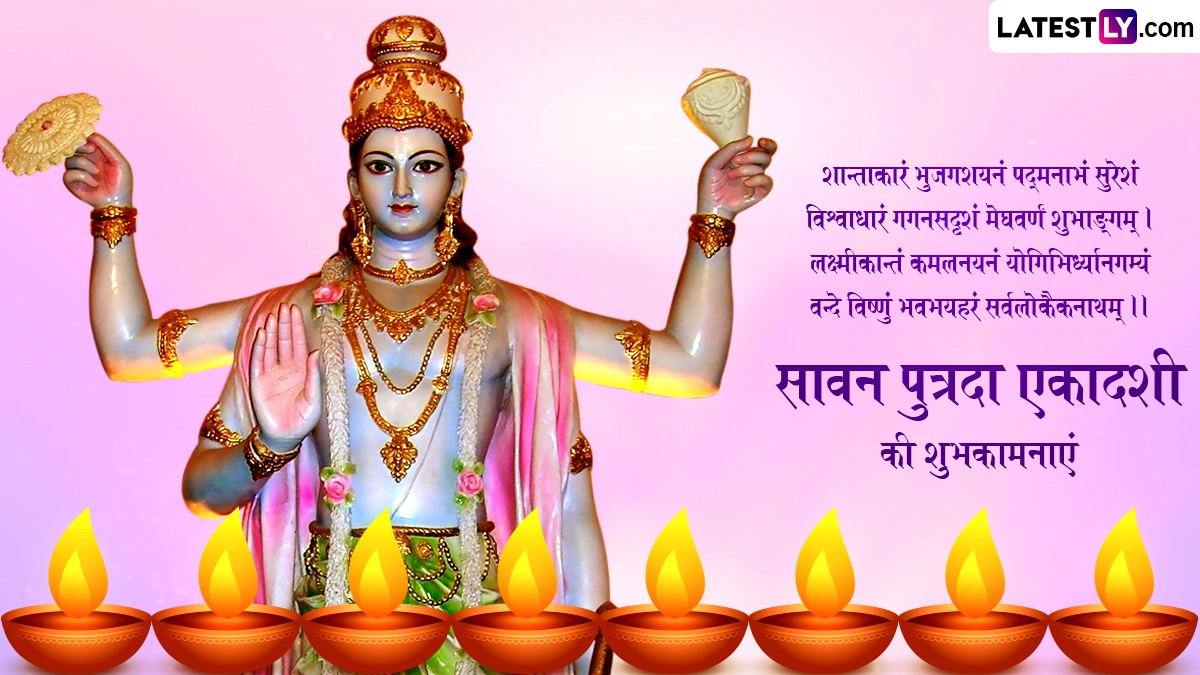 हिंदू धर्म की प्रचलित मान्यताओं के अनुसार, सावन पुत्रदा एकादशी का व्रत करने से व्यक्ति को वाजपेयी यज्ञ के समान फल प्राप्त होता है. इस व्रत के प्रभाव से निसंतान दंपत्तियों को संतान प्राप्ति का आशीर्वाद मिलता है. सावन पुत्रदा एकादशी पर व्रत रखकर श्रीहरि की पूजा-अर्चना करने के अलावा लोग शुभकामना संदेशों का आदान-प्रदान भी करते हैं. ऐसे में आप भी इन भक्तिमय विशेज, वॉट्सऐप मैसेजेस, कोट्स, फेसबुक ग्रीटिंग्स को भेजकर सावन पुत्रदा एकादशी की शुभकामनाएं दे सकते हैं.