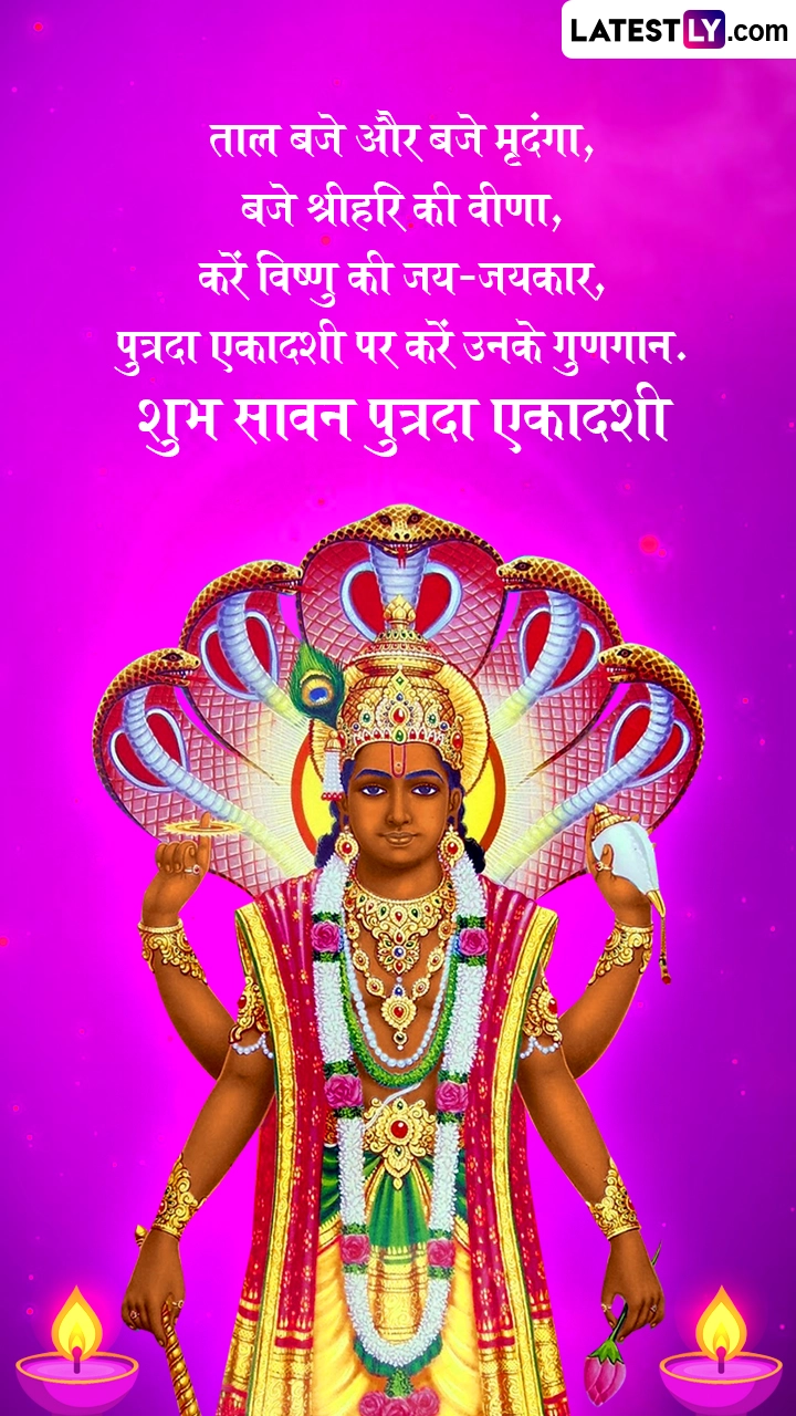 सावन मास के शुक्ल पक्ष की एकादशी तिथि को सावन पुत्रदा एकादशी का व्रत किया जाता है, जिसे पवित्रा एकादशी के नाम से भी जाना जाता है. इस साल सावन पुत्रदा एकादशी का व्रत उदयातिथि के अनुसार 5 अगस्त 2025 को रखा जा रहा है. इस पावन अवसर पर आप इन हिंदी विशेज, वॉट्सऐप मैसेजेस, कोट्स, फेसबुक ग्रीटिंग्स को अपनों संग शेयर करके उनसे शुभ सावन पुत्रदा एकादशी कह सकते हैं.