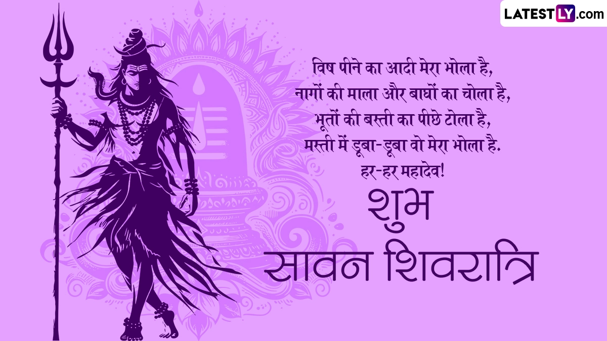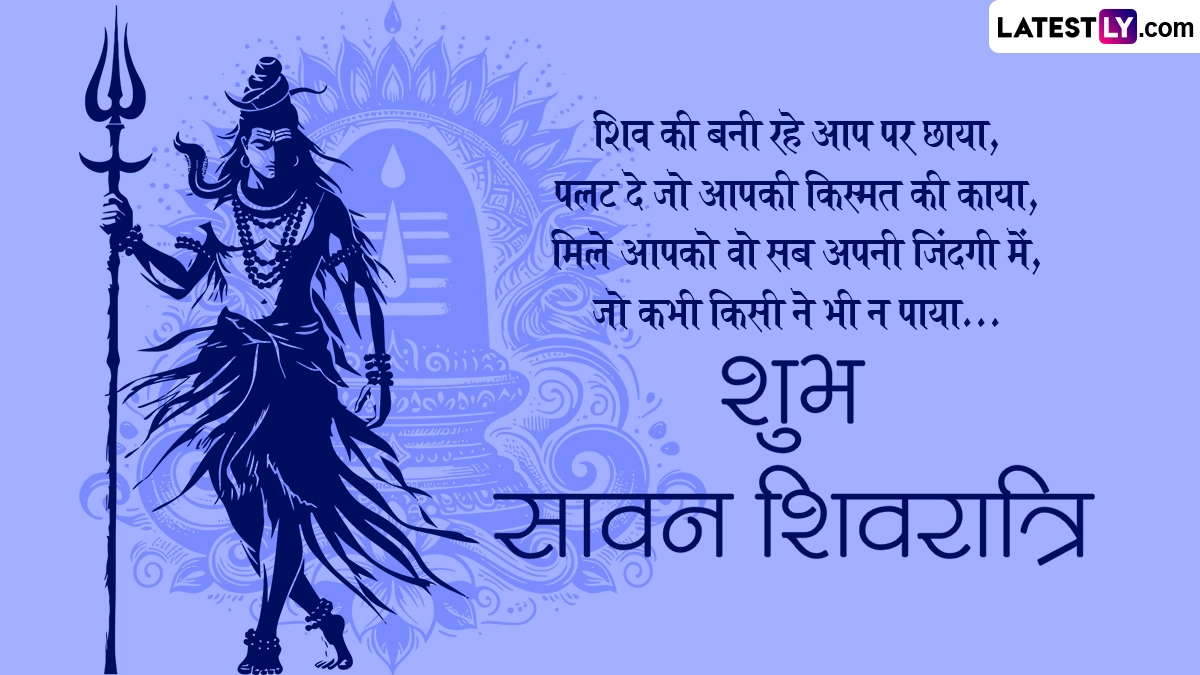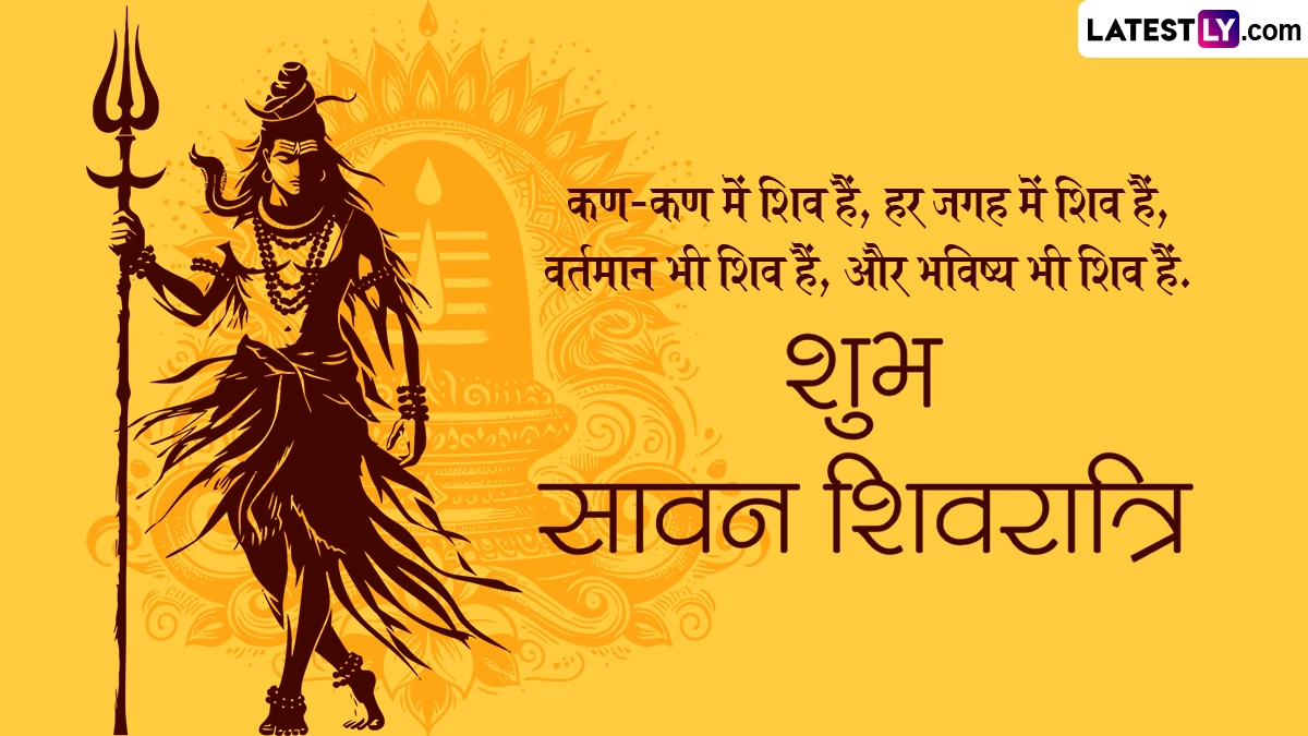 सावन शिवरात्रि पर भगवान शिव के साथ-साथ माता पार्वती की उपासना करने से भक्तों को शुभ फलों की प्राप्ति होती है. सावन शिवरात्रि पर शिवलिंग पर जल और बेलपत्र अर्पित करने से भी महादेव प्रसन्न हो जाते हैं और साधक के जीवन की सभी समस्याओं को हल करते हैं. ऐसे में इस बेहद पावन अवसर पर आप इन शानदार हिंदी विशेज, कोट्स, वॉट्सऐप मैसेजेस, फेसबुक ग्रीटिंग्स को भेजकर अपनों से शुभ सावन शिवरात्रि कह सकते हैं.