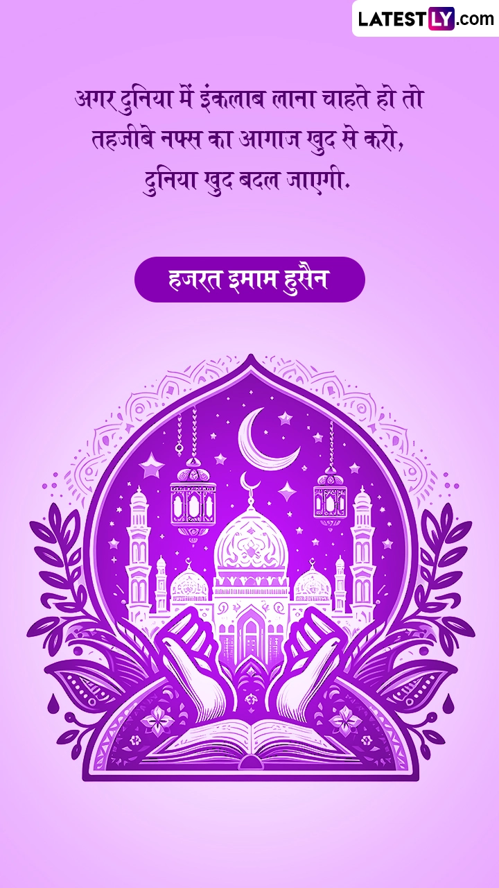 इस साल मुहर्रम महीने की शुरुआत 27 जून 2025 से हुई थी, जबकि इस महीने के 10वें दिन आशूरा होता है, जिसे यौम-ए-आशूरा के नाम से भी जाना जाता है और इस साल 6 जुलाई 2025 को आशूरा मनाया जा रहा है. आशूरा के इस अवसर पर आप हजरत इमाम हुसैन के इन प्रेरणादायी हिंदी कोट्स को अपनों संग शेयर करके उनकी शहादत को याद कर सकते हैं.