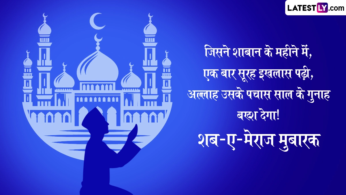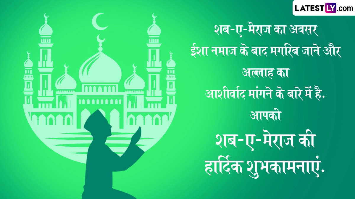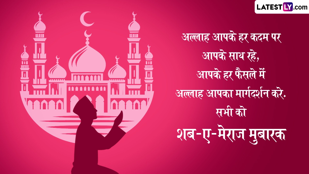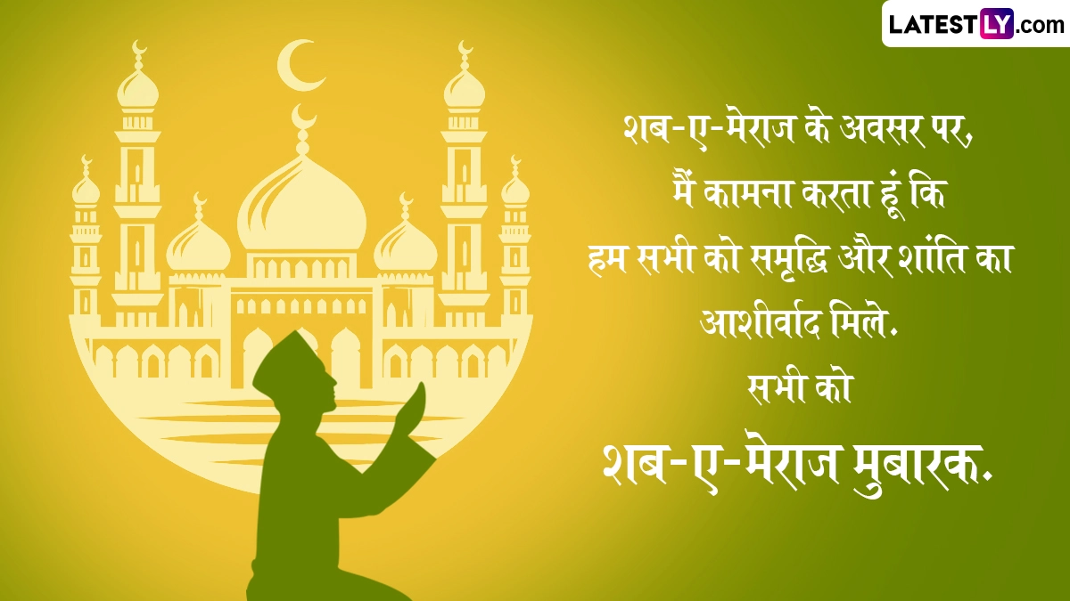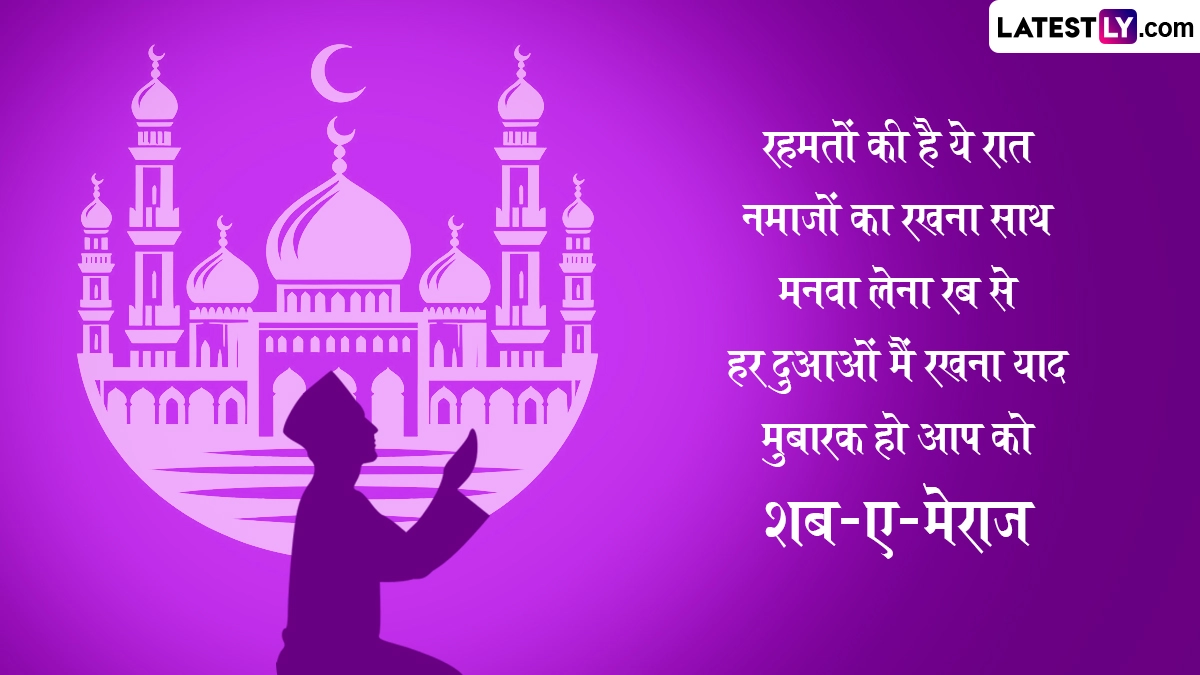 Shab E Meraj Mubarak 2025 Messages: इसरा (Isra) और मेराज (Mi'raj), जिसे अल इसरा' वल मेराज (Al Isra' wal Miraj) के नाम से भी जाना जाता है, इस्लामी कैलेंडर के सातवें महीने रजब के महीने के 27वें दिन मनाया जाता है. शब-ए-मिराज, इसरा और मिराज या अल-इसरा वल मिराज के नाम से भी जानी जाने वाली रात्रि यात्रा, रजब (इस्लामिक कैलेंडर का 7वां महीना) महीने की 27वीं तारीख को मनाई जाती है. शब-ए-मिराज का शाब्दिक अर्थ है चढ़ाई की रात. यह आयोजन उस रात का जश्न मनाता है, जब पैगंबर (स.अ.व.) मक्का में मस्जिद अल-हरम से स्वर्ग की ओर चढ़े थे. इस रात का एक बड़ा उपहार यह था कि मुसलमानों पर अनिवार्य प्रार्थना (फर्द सलाह) स्थापित की गई थी. हमारे पैगंबर (स.अ.व.) के धन्य जीवन की अन्य घटनाओं और अवसरों की तरह, रात्रि यात्रा पूरी मानवता के लिए प्रेरणा और सबक का एक समृद्ध स्रोत है. यह भी पढ़ें: Shab E Meraj Mubarak 2025 HD Images: शब-ए-मेराज मुबारक! शेयर करें ये WhatsApp Wishes, Greetings और Wallpapers