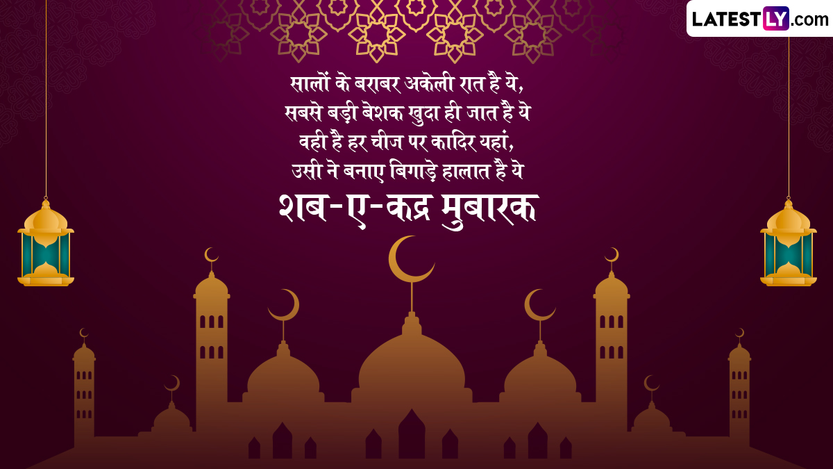 Shab-e-Qadr Mubarak 2025 Wishes: शब-ए-क़द्र (Shab-e-Qadr) किस दिन होगी, यह चांद के दिखने पर निर्भर करेगा. हालांकि, 2025 में यह 27 मार्च को पड़ने की उम्मीद है, जो गुरुवार को है. यह रमज़ान के महीने की 27वीं रात को मनाया जाता है. शब-ए-कद्र, जिसे लैलात अल-कद्र (Laylat al-Qadr) के नाम से भी जाना जाता है, उस दिन को याद करता है जब कुरान की आयतें पहली बार पैगंबर मुहम्मद (PBUH) पर उतरी थीं. इसे इस्लामी आस्था की सबसे पवित्र रातों में से एक माना जाता है. इस दिन को मनाने के लिए मुसलमान पूरी रात कुरान की आयतें पढ़ते हैं. ऐसा माना जाता है कि इस रात में सर्वशक्तिमान की कृपा बरसती है. इस रात अल्लाह के लिए विशेष प्रार्थना या 'दुआ' भी की जाती है. धार्मिक विद्वान और उपदेशक कुरान, इसकी आयतों और पैगंबर के जीवन पर चर्चा करते हैं ताकि मुसलमानों को धार्मिकता और आस्था के मार्ग पर चलने के लिए प्रेरित किया जा सके. यह भी पढ़ें: Shab-e-Qadr 2025 Mehndi Design: नेमतों की रात शब-ए कद्र पर ये खूबसूरत मेहंदी डिजाइन लगाकर अपने हाथों में लगाएं चार चांद, देखें वीडियो