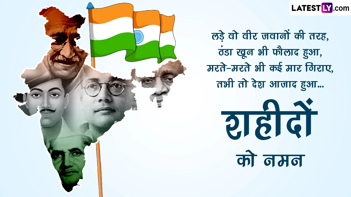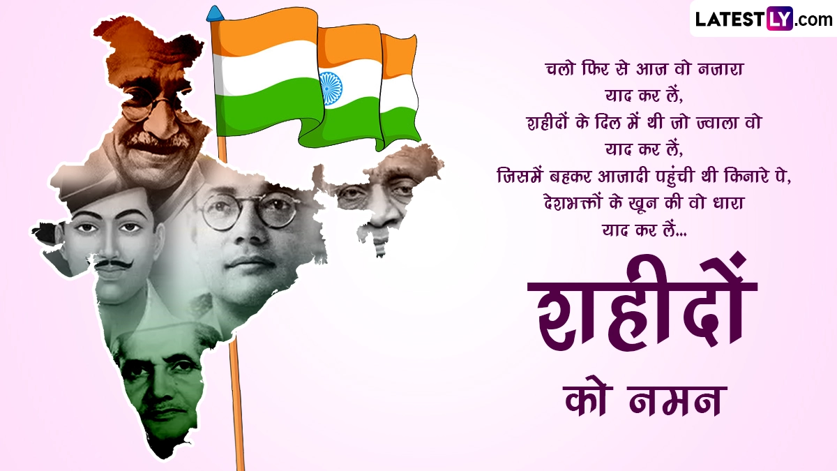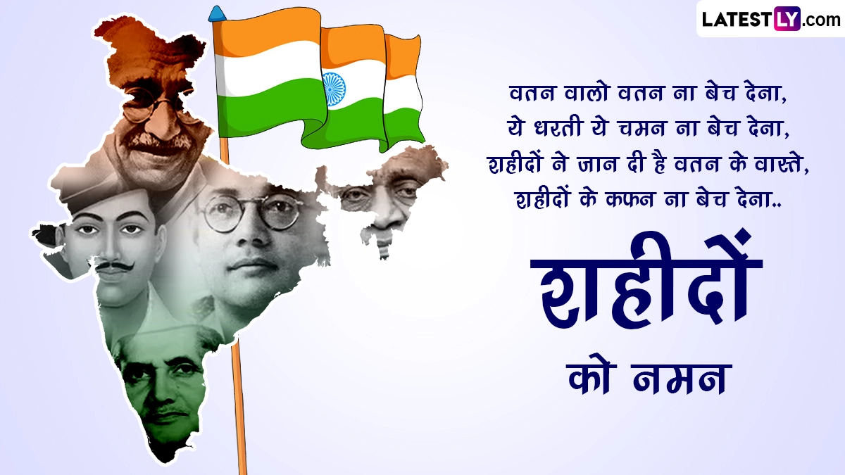 भारत में साल भर में छह अलग-अलग मौकों पर शहीद दिवस मनाया जाता है. 30 जनवरी को शहीद दिवस, 23 मार्च को शहीद दिवस मनाया जाता है. 23 मार्च को मनाए जाने वाले शहीद दिवस पर आप इन हिंदी मैसेजेस, वॉट्सऐप स्टिकर्स, कोट्स, फोटो एसएमएस को अपनों संग शेयर करके शहीद भगत सिंह, सुखदेव और राजगुरु को श्रद्धांजलि अर्पित करते हुए उन्हें नमन कर सकते हैं.