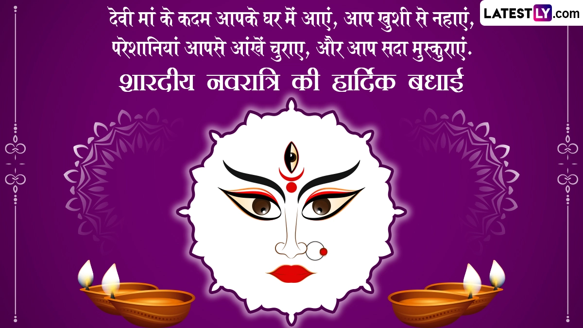 नवरात्रि में कलश स्थापना करने से मां दुर्गा की कृपा से भक्तों के जीवन में सुख-समृद्धि और खुशहाली का आगमन होता है. शारदीय नवरात्रि की शुरुआत होते ही कई जगहों पर गरबा-डांडिया और रामलीलाओं का आयोजन किया जाता है. ऐसे में इस अति पावन अवसर पर आप इन हिंदी मैसेजेस, फोटो विशेज, जीआईएफ ग्रीटिंग्स, वॉट्सऐप स्टेटस और एसएमएस को भेजकर अपनों को शारदीय नवरात्रि की बधाई दे सकते हैं.