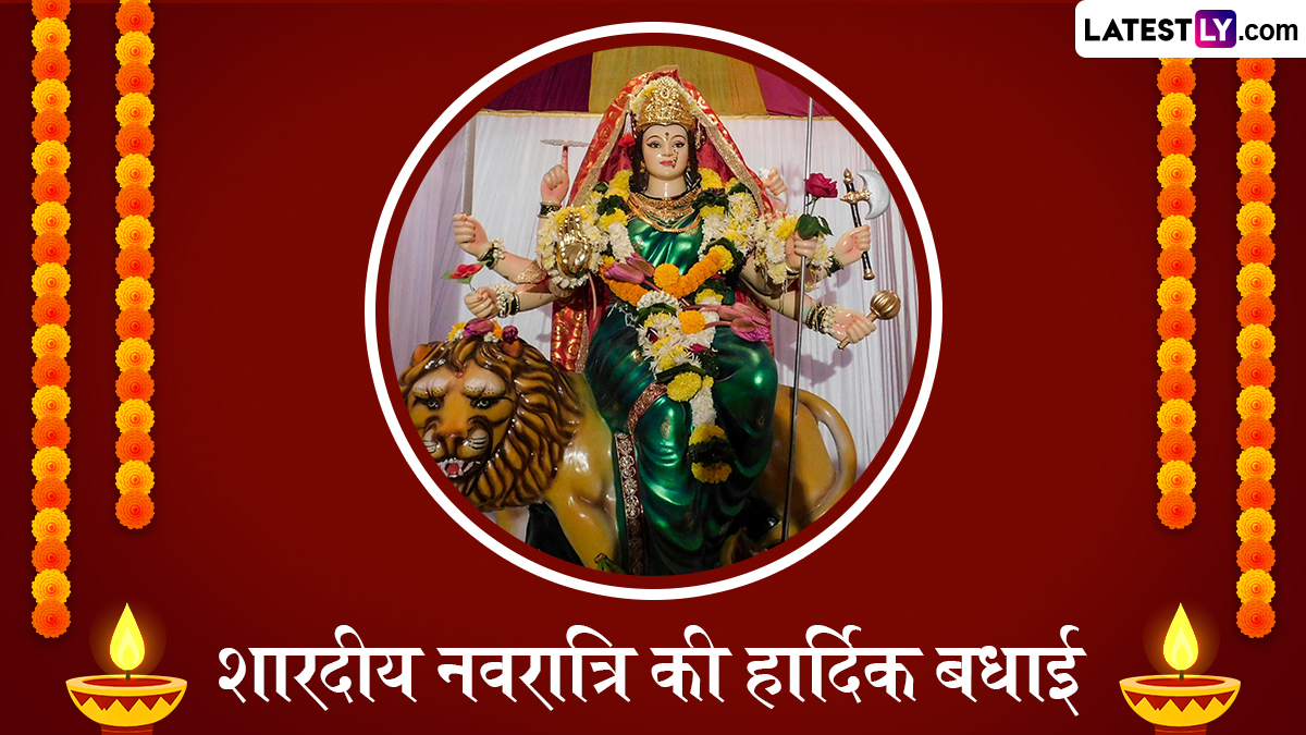 Sharad Navratri 2025 Greetings in Hindi: सर्वपितृ अमावस्या (Sarv Pitru Amavasya) के अगले दिन से देशभर में शारदीय नवरात्रि (Sharad Navratri) की धूम मच जाती है और आज से यानी 22 सितंबर 2025 से मां दुर्गा (Maa Durga) के नौ दिवसीय पर्व शारदीय नवरात्रि की शुरुआत हो गई है. भक्तों के बीच मां दुर्गा का आगमन हो गया है और हर कोई उनकी भक्ति में सराबोर नजर आ रहा है. नौ दिवसीय नवरात्रि पर्व के पहले दिन घटस्थापना (Ghatsthapana) की जाती है, अखंड ज्योत जलाई जाती है और नौ दिनों तक मां दुर्गा के नौ स्वरूपों की पूजा की जाती है, जिसे नवदुर्गा कहा जाता है. ऐसी मान्यता है कि मां जगदम्बा के हर स्वरूप से भक्तों की अलग-अलग मनोकामनाएं पूरी होती हैं. वैसे तो साल भर में चार बार नवरात्रि का उत्सव मनाया जाता है, जिनमें से दो गुप्त नवरात्रि होती है, जबकि चैत्र और अश्विन मास की नवरात्रि को बहुत धूमधाम से मनाया जाता है. उसमें भी शारदीय नवरात्रि को लेकर भक्तों के बीच गजब का जोश और उत्साह देखने को मिलता है.