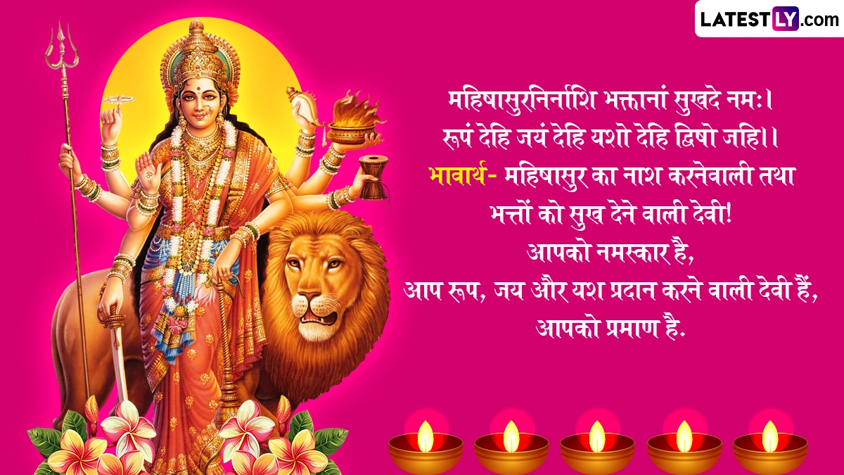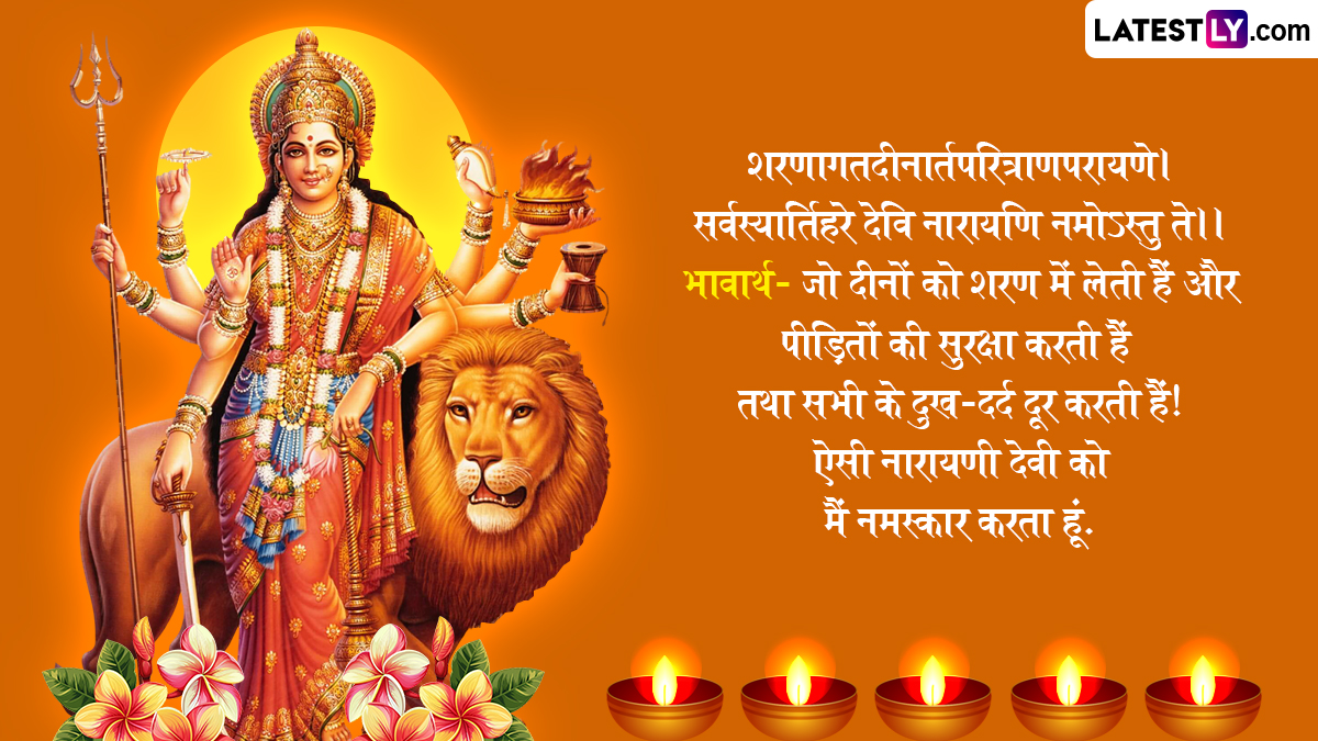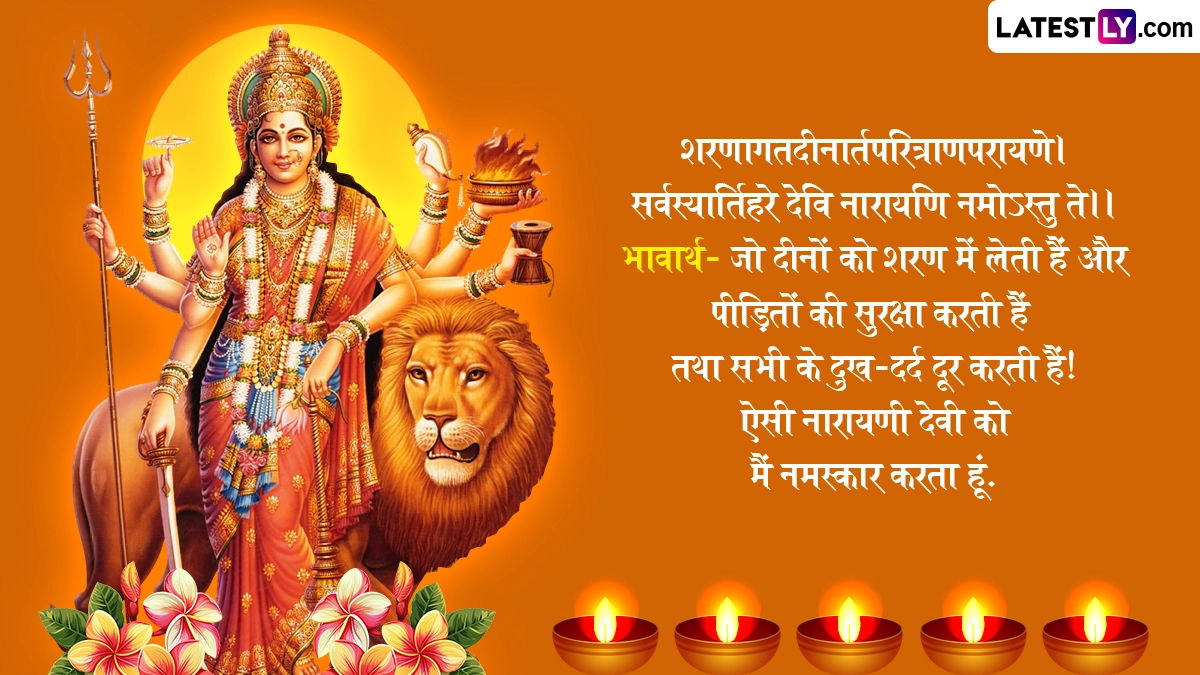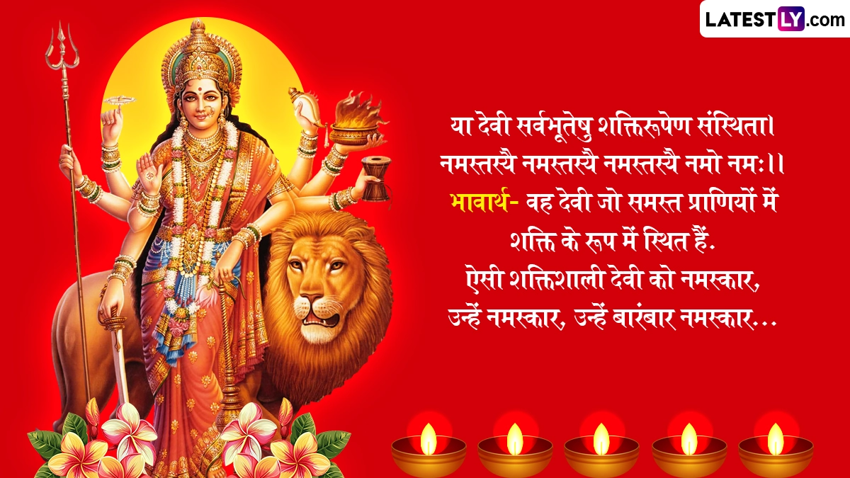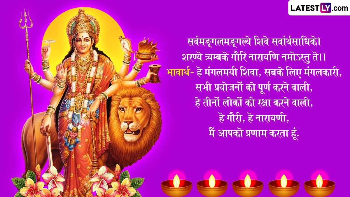 वैसे तो मां दुर्गा का वाहन शेर है, इसलिए उन्हें शेरावाली मां कहा जाता है, लेकिन नवरात्रि में जब मां दुर्गा धरती पर आती हैं तो उस दिन के हिसाब से उनका वाहन बदल जाता है. शारदीय नवरात्रि के दौरान देशभर में रामलीला, डांडिया और गरबा का आयोजन किया जाता है, साथ ही इस पर्व की बधाई दी जाती है. ऐसे में आप भी शारदीय नवरात्रि के इन शानदार संस्कृत मैसेजेस, श्लोक, वॉट्सऐप विशेज, जीआईएफ ग्रीटिंग्स को भेजकर अपनों को शुभकामनाएं दे सकते हैं.