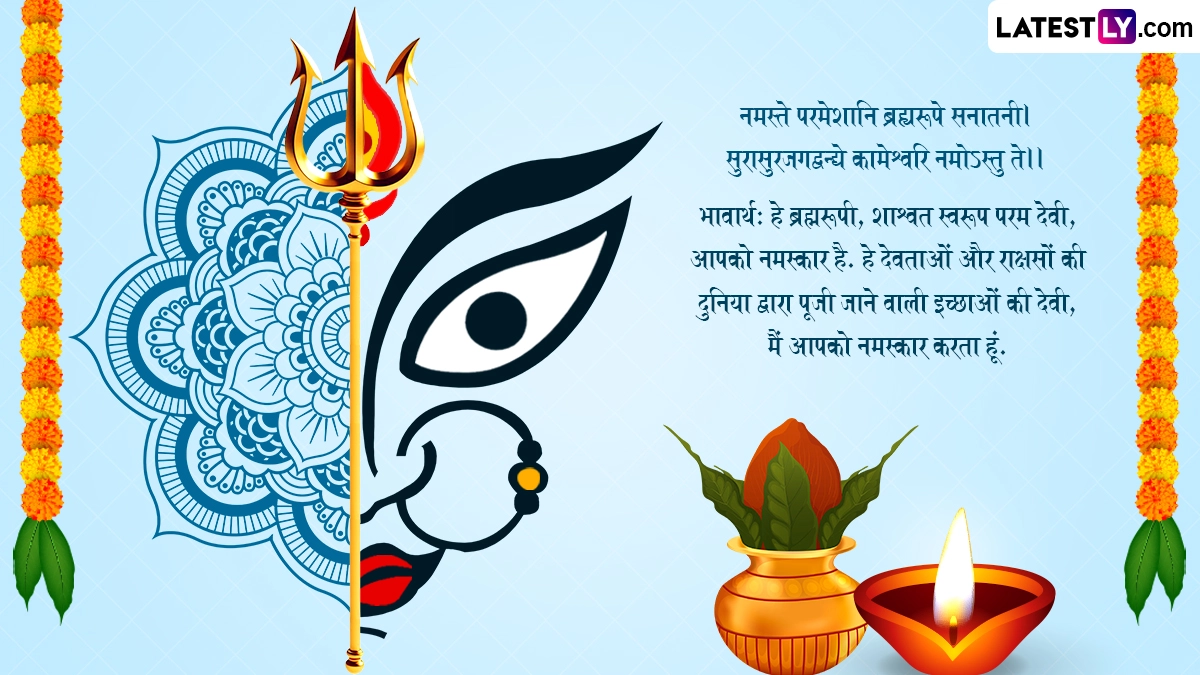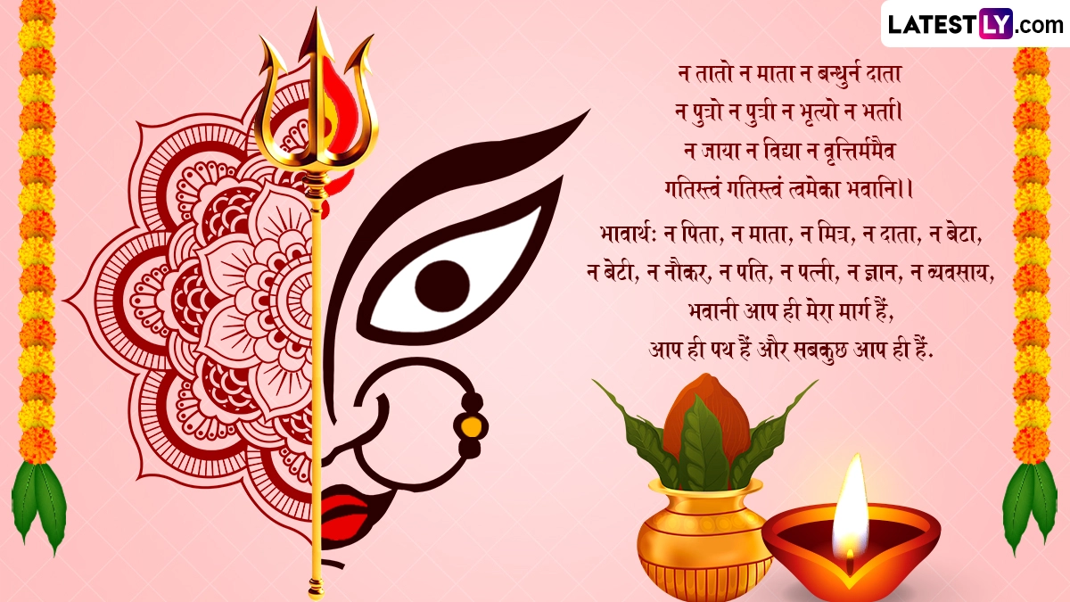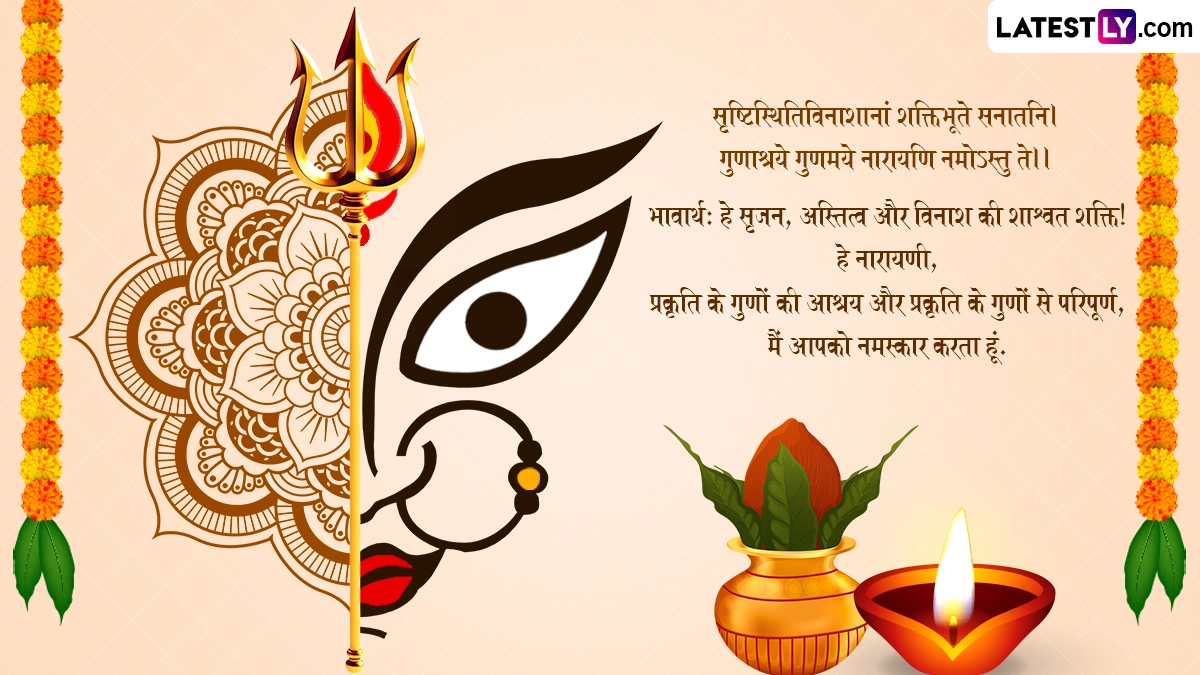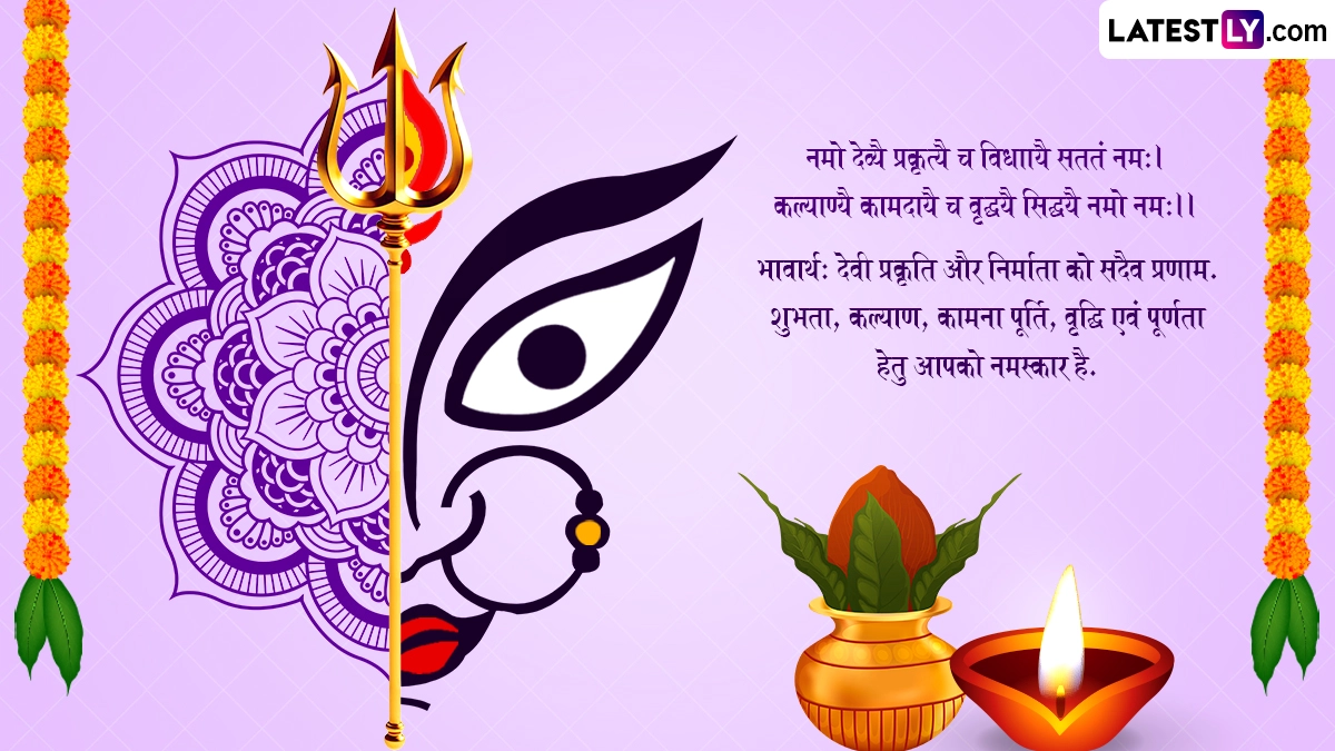 ऐसी मान्यता है कि आश्विन शुक्ल प्रतिपदा तिथि के दिन शुभ मुहूर्त में कलश स्थापना की जानी चाहिए, क्योंकि नौ दिनों तक कलश देवी के स्वरूप में हमारे निवास स्थान में विराजमान रहता है. मातारानी के स्वागत के साथ-साथ भक्त एक-दूसरे को इस पर्व की बधाई भी देते हैं. ऐसे में आप भी संस्कृत के इन शानदार विशेज, वॉट्सऐप मैसेजेस, कोट्स, फेसबुक ग्रीटिंग्स के जरिए प्रियजनों को शारदीय नवरात्रि की शुभकामनाएं दे सकते हैं.