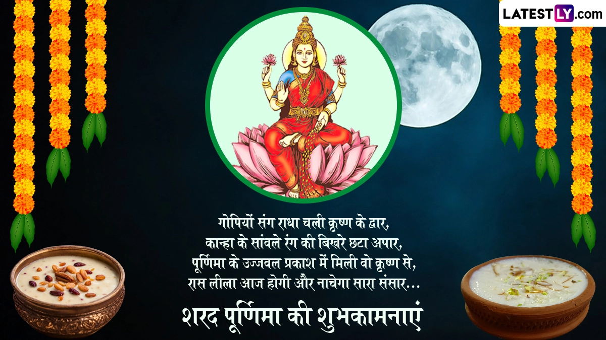 शरद पूर्णिमा की रात को पूरे साल की सभी पूर्णिमा तिथियों में सबसे खास माना जाता है. आरोग्य प्रदान करने वाली इस पूर्णिमा का उत्सव लोग हर्षोल्लास के साथ मनाते हैं और शुभकामना संदेशों का आदान-प्रदान करते हैं. ऐसे में इस खास अवसर पर आप इन शानदार हिंदी विशेज, वॉटस्ऐप मैसेजेस, कोट्स, फेसबुक ग्रीटिंग्स को भेजकर अपनों को शरद पूर्णिमा की शुभकामनाएं दे सकते हैं.