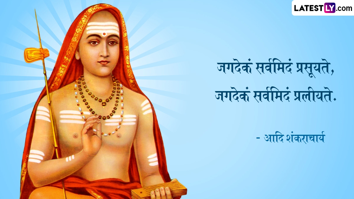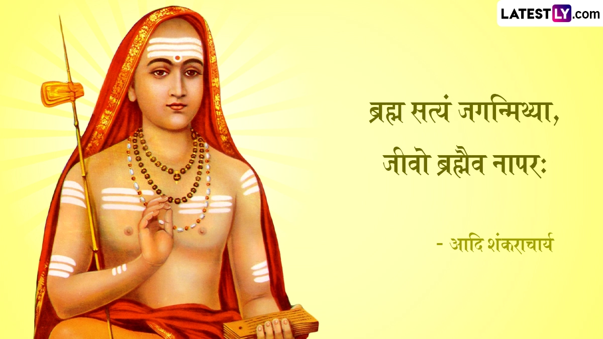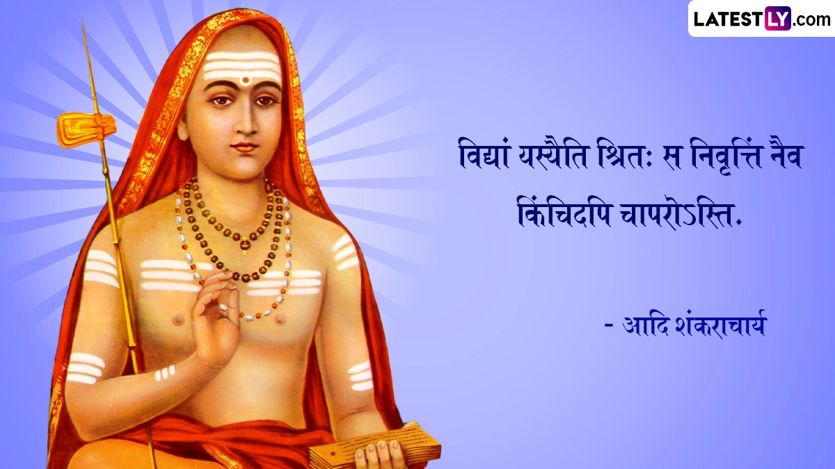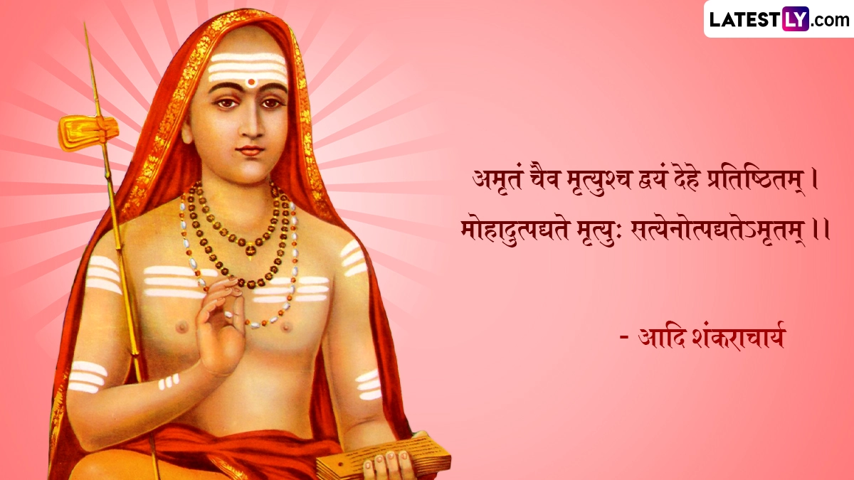 Shankaracharya Jayanti 2024 Quotes: भारत भूमि में बेशुमार महान दार्शनिक, आध्यात्मिक साधु-संतों एवं ऋषि-मुनियों ने जन्म लिया, और देश-विदेश में अपने ज्ञान मंडल से समग्र आभा को प्रकाशित किया. इन्हीं महानतम विभूतियों में एक हैं जगद्गुरू आदि शंकराचार्य (Jagadguru Adi Shankaracharya). 8वीं शताब्दी में केवल 32 वर्षों के अल्प जीवन में आदि शंकराचार्य जी ने अद्वैत वेदांत की वास्तविकता को औपचारिक स्वरूप दिया. आदि शंकराचार्य (Adi Shankaracharya) ने अपने जीवनकाल के दौरान पूरे भारत की यात्रा की. मात्र 32 साल की उम्र में देह त्यागने से पूर्व उन्होंने अपने अनमोल विचारों एवं उपदेशों का खजाना छोड़ा है, जिसे समझकर कोई भी सांसारिक अस्तित्व की गुणवत्ता में सुधार कर सकता है. यहां हम आदि शंकराचार्य के आध्यात्मिक कोट्स (Adi Shankaracharya Quotes), उपनिषदों एवं अमर विचारों को उनकी मूल भाषा संस्कृत में बता रहे हैं. यह भी पढ़ें: Adi Shankaracharya Jayanti 2024: कब है शंकराचार्य जयंती? जानें कितनी कठिन शर्तें होती हैं शंकराचार्य के चुनाव में?