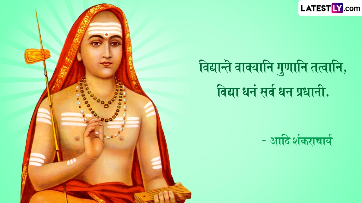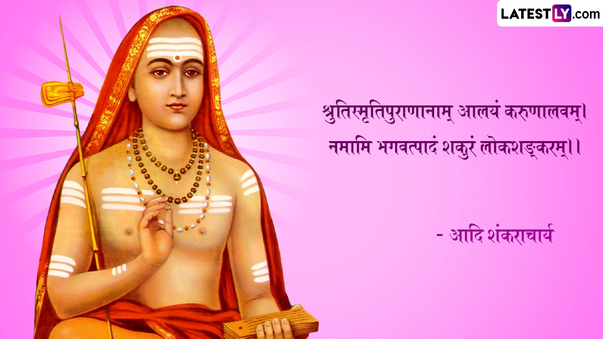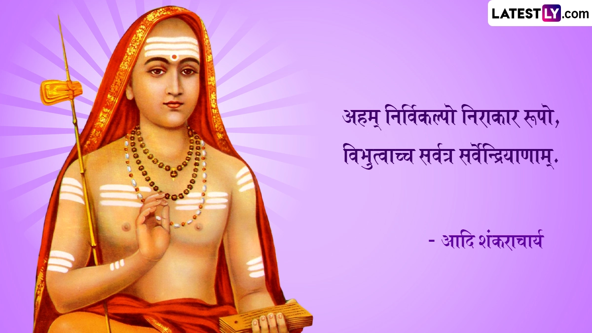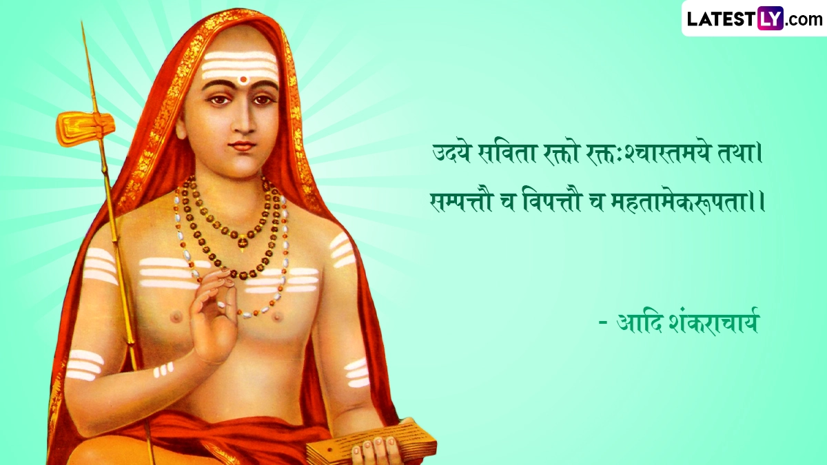 Shankaracharya Jayanti 2024 Quotes: भारत भूमि में बेशुमार महान दार्शनिक, आध्यात्मिक साधु-संतों एवं ऋषि-मुनियों ने जन्म लिया, और देश-विदेश में अपने ज्ञान मंडल से समग्र आभा को प्रकाशित किया. इन्हीं महानतम विभूतियों में एक हैं जगद्गुरू आदि शंकराचार्य (Jagadguru Adi Shankaracharya). 8वीं शताब्दी में केवल 32 वर्षों के अल्प जीवन में आदि शंकराचार्य जी ने अद्वैत वेदांत की वास्तविकता को औपचारिक स्वरूप दिया. आदि शंकराचार्य (Adi Shankaracharya) ने अपने जीवनकाल के दौरान पूरे भारत की यात्रा की. मात्र 32 साल की उम्र में देह त्यागने से पूर्व उन्होंने अपने अनमोल विचारों एवं उपदेशों का खजाना छोड़ा है, जिसे समझकर कोई भी सांसारिक अस्तित्व की गुणवत्ता में सुधार कर सकता है. यहां हम आदि शंकराचार्य के आध्यात्मिक कोट्स (Adi Shankaracharya Quotes), उपनिषदों एवं अमर विचारों को उनकी मूल भाषा संस्कृत में बता रहे हैं. यह भी पढ़ें: Adi Shankaracharya Jayanti 2024: कब है शंकराचार्य जयंती? जानें कितनी कठिन शर्तें होती हैं शंकराचार्य के चुनाव में?