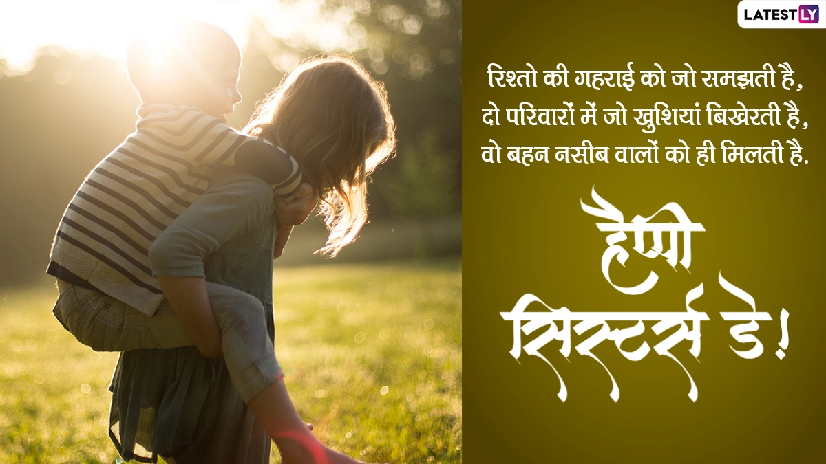 Sisters' Day 2022 Messages in Hindi: हर साल अगस्त महीने के पहले रविवार को जहां दोस्ती को समर्पित फ्रेंडशिप डे (Friendship Day) मनाया जाता है तो वहीं इसी दिन बहनों (Sisters) के प्रति प्यार और सम्मान जाहिर करने के लिए सिस्टर्स डे (Sisters' Day) मनाया जाता है. इस साल सिस्टर्स डे यानी बहन दिवस 7 अगस्त 2022 को सेलिब्रेट किया जा रहा है. इसमें कोई दो राय नहीं है कि मां के बाद बहन ही इकलौती ऐसी इंसान होती है जो अपने भाई-बहनों के सुख-दुख को बांटती है. जब हम जीवन में किसी दुविधा का सामना कर रहे होते हैं तो बहन एक सच्ची मार्गदर्शक की तरह हमें सही राह भी दिखाती है. बेशक बहन के साथ हमारा खून का रिश्ता होता है, लेकिन उससे कही ज्यादा उसके साथ हमारी गहरी भावनाएं जुड़ी होती हैं.