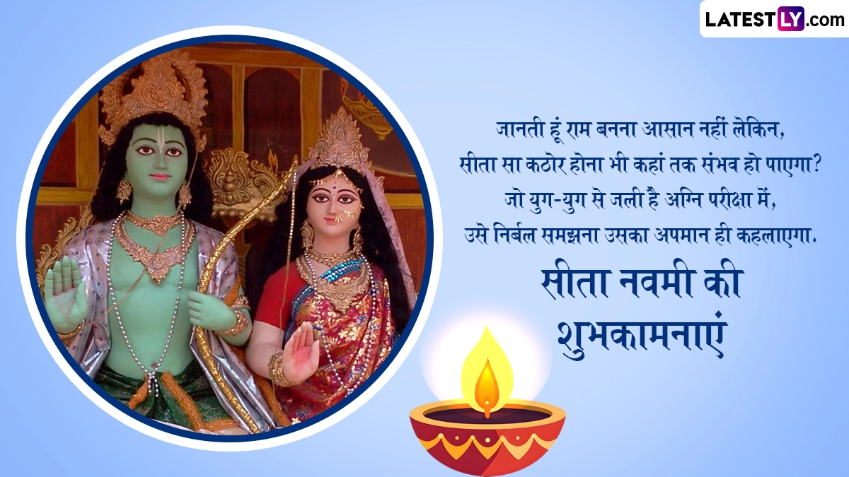 माता सीता को माता लक्ष्मी का अवतार माना जाता है, इसलिए ऐसा कहा जाता है कि इस दिन उनके पूजन से महिलाओं को सदैव सुखी व सौभाग्यवती रहने का आशीर्वाद मिलता है, इसके साथ ही माता लक्ष्मी की भी कृपा प्राप्त होती है. ऐसे में इस बेहद पावन अवसर पर आप इन शानदार हिंदी विशेज, वॉट्सऐप मैसेजेस, कोट्स, जीआईएफ ग्रीटिंग्स को भेजकर अपनों को सीता नवमी की शुभकामनाएं दे सकते हैं.