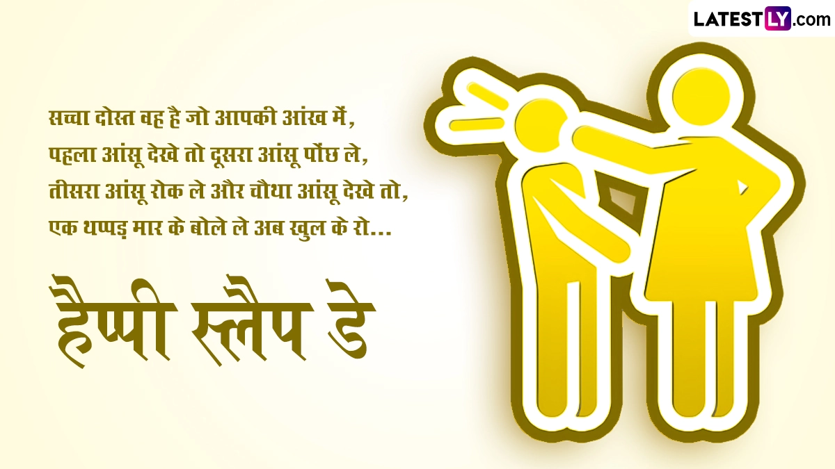 स्लैप डे उन लोगों के लिए बेहद खास माना जाता है जो अपने धोखेबाज पार्टनर या एक्स को थप्पड़ मारकर उन्हें सबक सिखाना चाहते हैं, लेकिन इसका मतलब यह बिल्कुल भी नहीं है कि आप सच में किसी को थप्पड़ जड़ दें. इस अवसर पर आप हैप्पी स्लैप डे के इन हिंदी मैसेजेस, कोट्स, वॉट्सऐप विशेज, जीआईएफ ग्रीटिंग्स और एचडी इमेजेस को पार्टनर और दोस्तों के साथ शेयर कर उन्हें सबक सिखा सकते हैं.