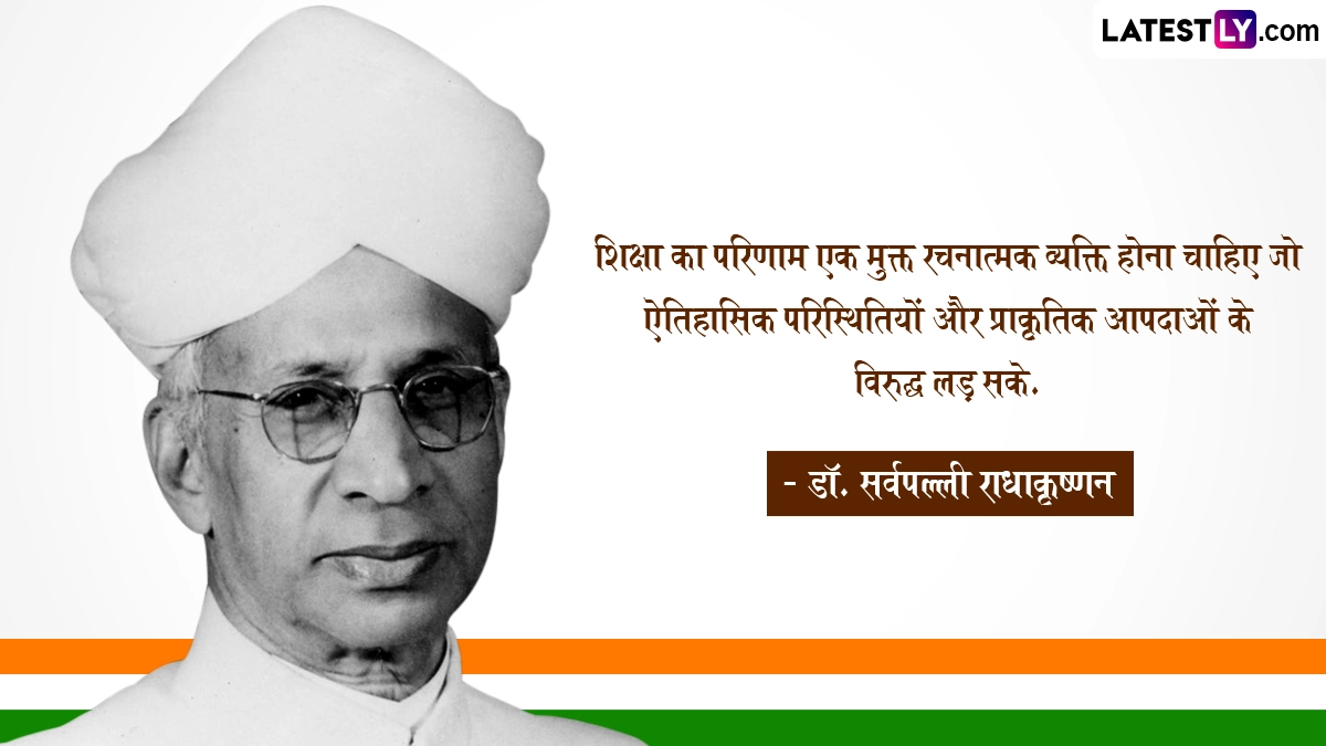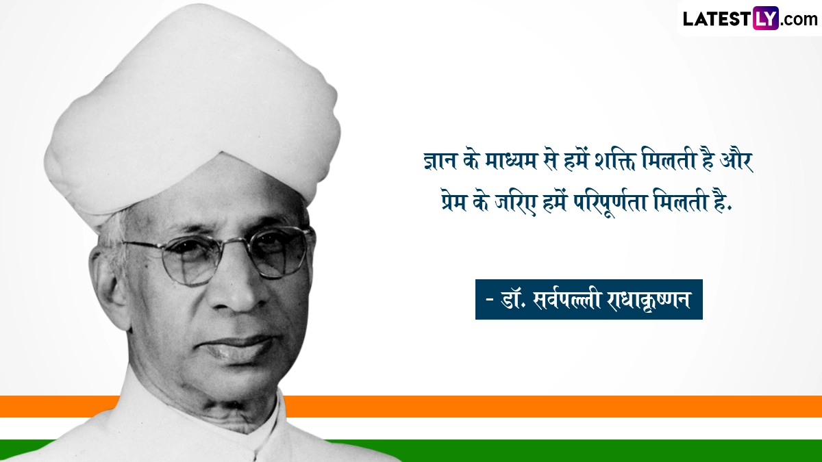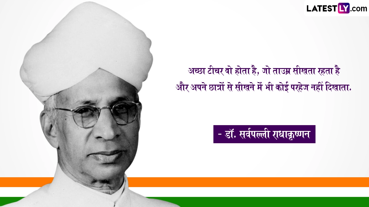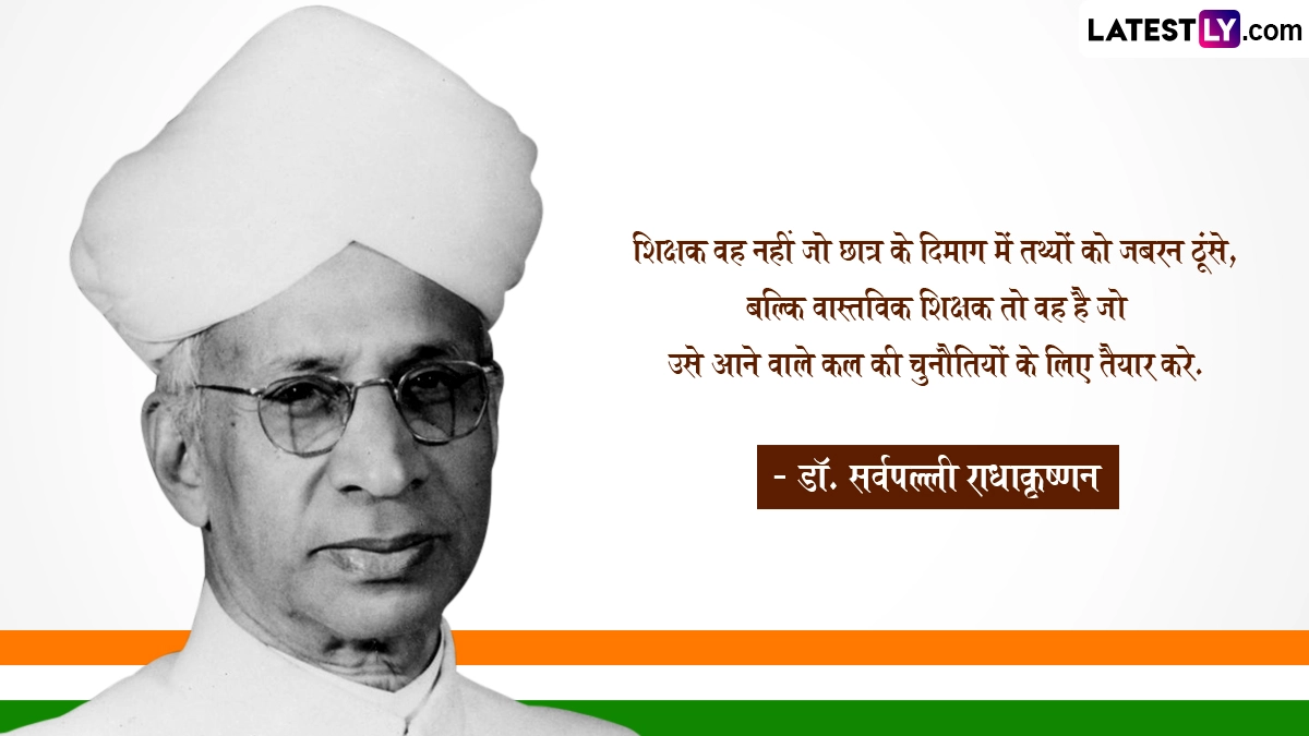 Teachers' Day 2024 Quotes: अपने छात्रों को अज्ञान रूपी अंधकार से ज्ञान रूपी प्रकाश तक ले जाने वाले तमाम शिक्षकों के प्रति प्यार, सम्मान और कृतज्ञता व्यक्त करने के लिए हर साल 5 सितंबर को देशभर में शिक्षक दिवस यानी टीचर्स डे (Teachers' Day) को उत्सव की तरह मनाया जाता है. दरअसल, भारत के पहले उप-राष्ट्रपति और दूसरे राष्ट्रपति डॉ. सर्वपल्ली राधाकृष्णन (Dr. Sarvapalli Radhakrishnan) ने शिक्षा के क्षेत्र में महत्वपूर्ण योगदान दिया है, इसलिए उनकी जयंती को शिक्षक दिवस के तौर पर मनाया जाता है. उनका जन्म 5 सितंबर 1888 को तमिलनाडु (Tamil Nadu) के थिरुथानी नामक स्थान पर एक मध्यम वर्गीय परिवार में हुआ था. कहा जाता है कि डॉ. सर्वपल्ली राधाकृष्णन बचपन से ही एक मेधावी और होनहार छात्र थे. उन्होंने मद्रास के क्रिश्चियन कॉलेज से फिलोसॉफी की पढ़ाई की थी. अपनी पढ़ाई पूरी करने के बाद उन्होंने मैसूर यूनिवर्सिटी से कलकत्ता यूनिवर्सिटी तक कई कॉलेजों में छात्रों को पढ़ाया. उन्हें साल 1930 में शिकागो यूनिवर्सिटी में हैल्केल लेक्चरर के तौर पर नियुक्त किया गया था.