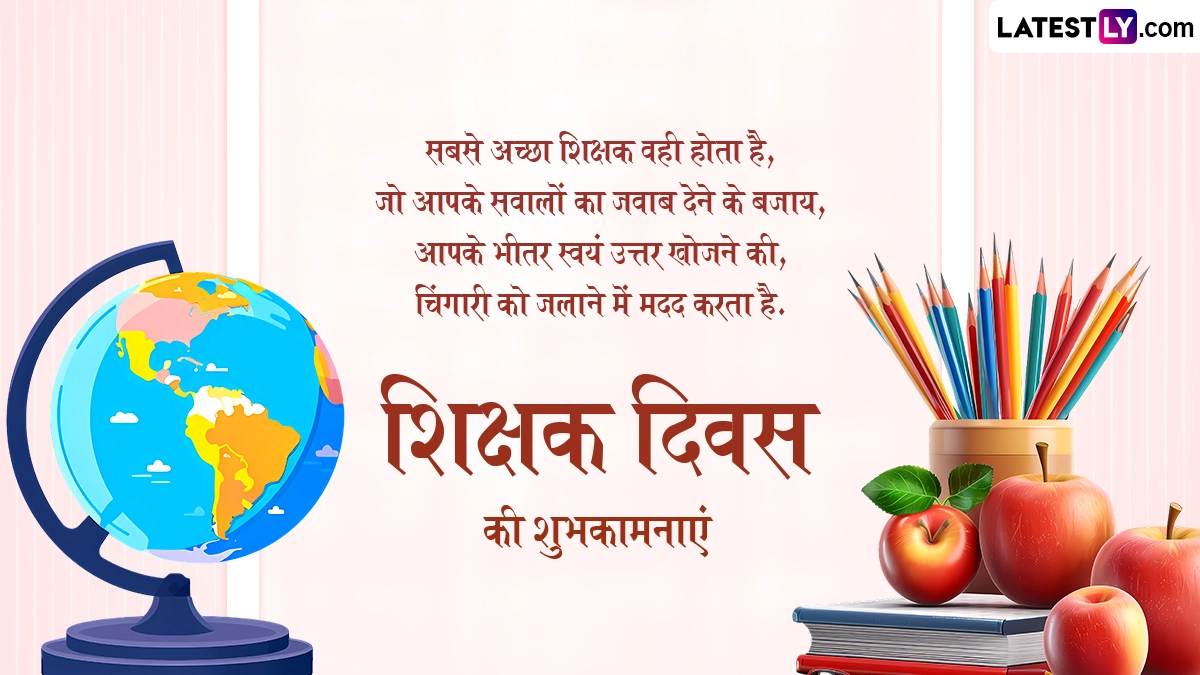 Teachers' Day 2024 Wishes in Hindi: इसमें कोई दो राय नहीं है कि इस संसार के हर इंसान के जीवन में शिक्षक (Teacher) की काफी महत्वपूर्ण भूमिका होती है, क्योंकि शिक्षक ही ऐसा मार्गदर्शक होता है जो ज्ञान और शिक्षा की अलख जगाकर व्यक्ति, समाज और राष्ट्र के भविष्य के निर्माण में काफी महत्वपूर्ण भूमिका निभाता है. शिक्षक अपनी मेहनत और लगन से अपने सभी छात्रों को शिक्षित करता है और उनके उज्जवल भविष्य के निर्माण में अहम भूमिका निभाता है. ऐसे ही शिक्षकों के प्रति प्यार, सम्मान और कृतज्ञता व्यक्त करने के लिए हर साल 5 सितंबर को शिक्षक दिवस यानी टीचर्स डे (Teachers' Day) मनाया जाता है. दरअसल, भारत के पहले उप-राष्ट्रपति और दूसरे राष्ट्रपति डॉ. सर्वपल्ली राधाकृष्णन (Dr. Sarvepalli Radhakrishnan) के जन्मदिन को शिक्षक दिवस के तौर पर मनाया जाता है,
