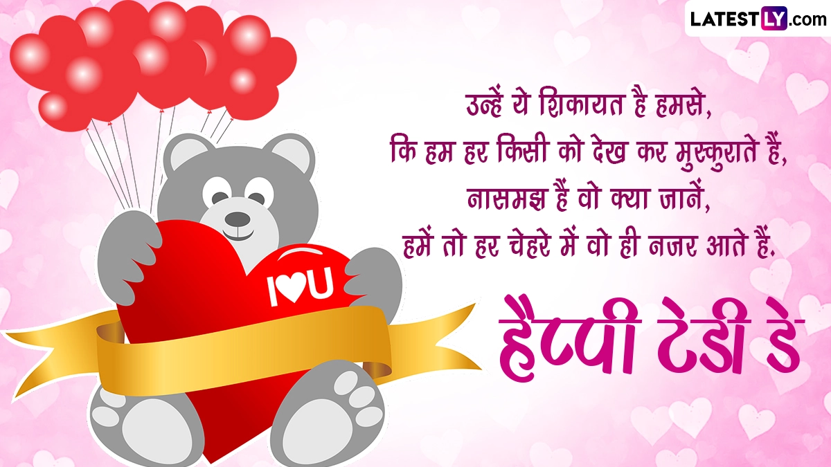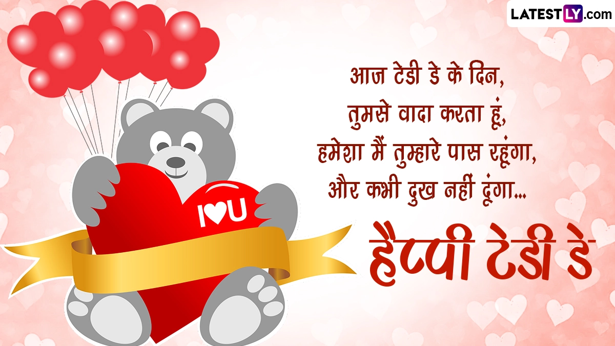 वैलेंटाइन वीक के चौथे दिन यानी टेडी डे को सेलिब्रेट करने के लिए कपल्स एक-दूसरे को गिफ्ट के तौर पर टेडी देते हैं और पार्टनर के सामने अपनी भावनाओं का इजहार करते हैं. हालांकि सोशल मीडिया के इस दौर में टेडी बियर गिफ्ट करने के साथ ही अगर आप शुभकामना संदेशों के जरिए बधाई दें तो यह दिन और भी स्पेशल बन जाएगा. आप इन रोमांटिक हिंदी मैसेजेस, शायरी, जीआईएफ ग्रीटिंग्स, वॉट्सऐप विशेज, फोटोज को भेजर हैप्पी टेडी डे कह सकते हैं.
