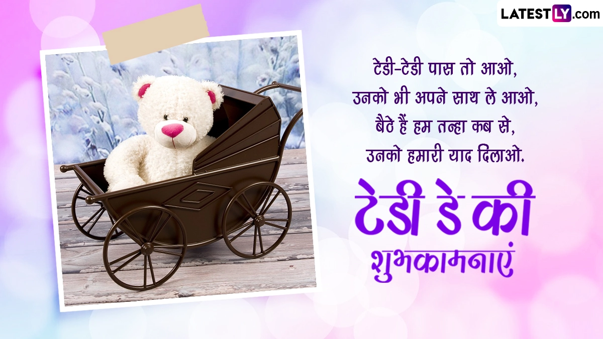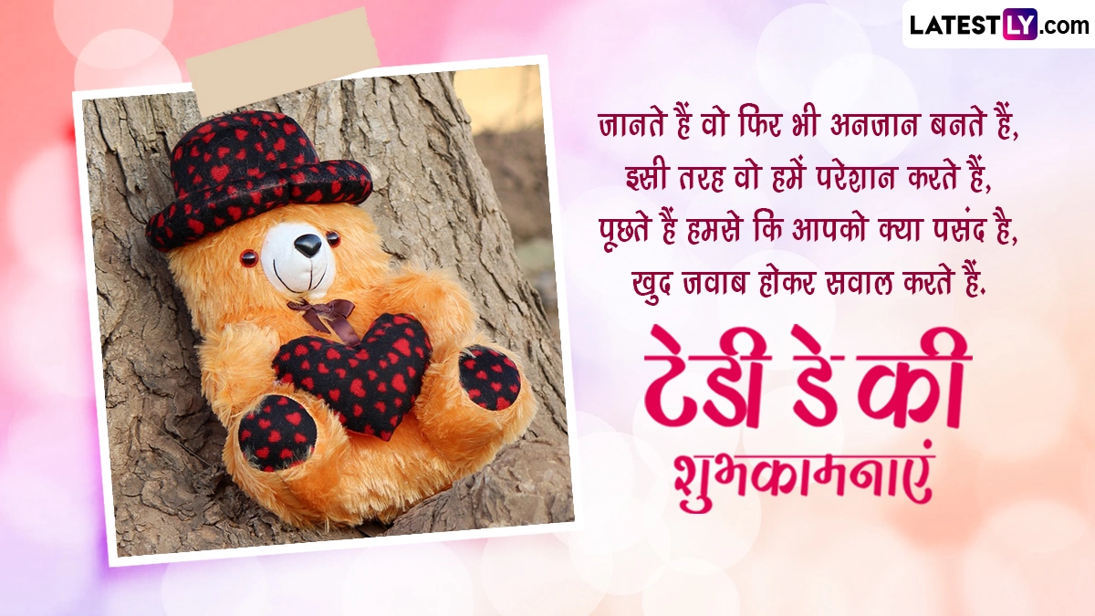 टेडी डे पर दुनिया भर के कपल्स अपने प्यार को टेडी बियर गिफ्ट करके अपने दिल का हाल बयां करते हैं. अपनी फीलिंग्स को पार्टनर तक आसानी से पहुंचाने के लिए अधिकांश लोग टेडी बियर का सहारा लेते हैं. टेडी गिफ्ट करने के अलावा आप इस खास अवसर पर इन शरारती हिंदी विशेज, कोट्स, वॉट्सऐप मैसेजेस, फेसबुक ग्रीटिंग्स के जरिए अपने प्यार को टेडी डे की शुभकामनाएं दे सकते हैं.
