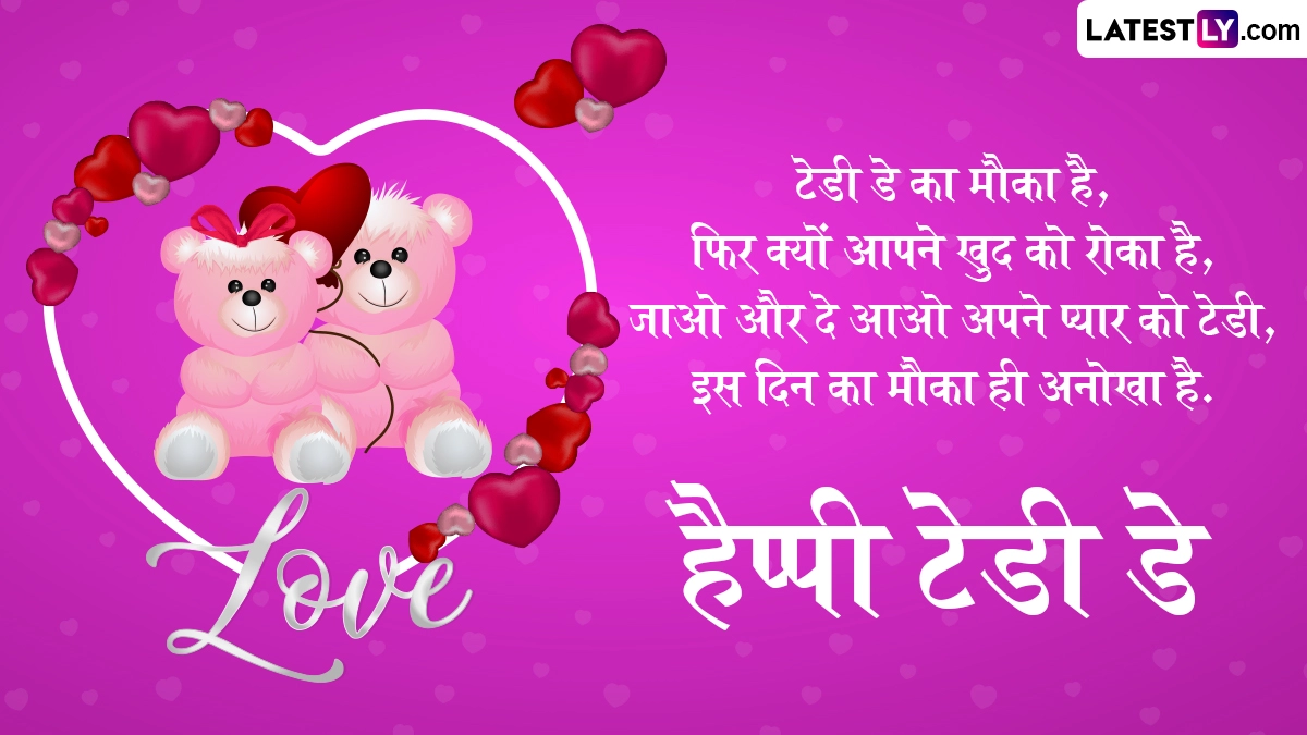 Teddy Day 2025 Messages in Hindi: प्यार का सप्ताह यानी वैलेंटाइन वीक (Valentine's Week) चल रहा है और फिजाओं में प्यार की खुमारी छाई हुई है. वैलेंटाइन वीक की शुरुआत 7 फरवरी से रोज डे (Rose Day) के साथ हुई है और आज यानी 10 फरवरी को दुनिया भर के कपल्स टेडी डे (Teddy Day) मना रहे हैं. बता दें कि टेडी डे का इतिहास अमेरिकी राष्ट्रपति थियोडोर रूजवेल्ट से जुड़ा है. कहा जाता है कि 14 नवंबर 1902 को अमेरिका के तत्कालीन राष्ट्रपति थियोडोर रूजवेल्ट अपने सहायक होल्ट कोलीर के साथ मिसिसिपी के एक जंगल में शिकार करने के लिए गए थे. शिकार करते समय उन्होंने एक काले रंग के भालू को पकड़ लिया, लेकिन उसकी घायल अवस्था देखकर उन्होंने भालू को जीवनदान देते हुए उसे छोड़ दिया.