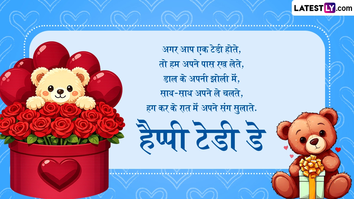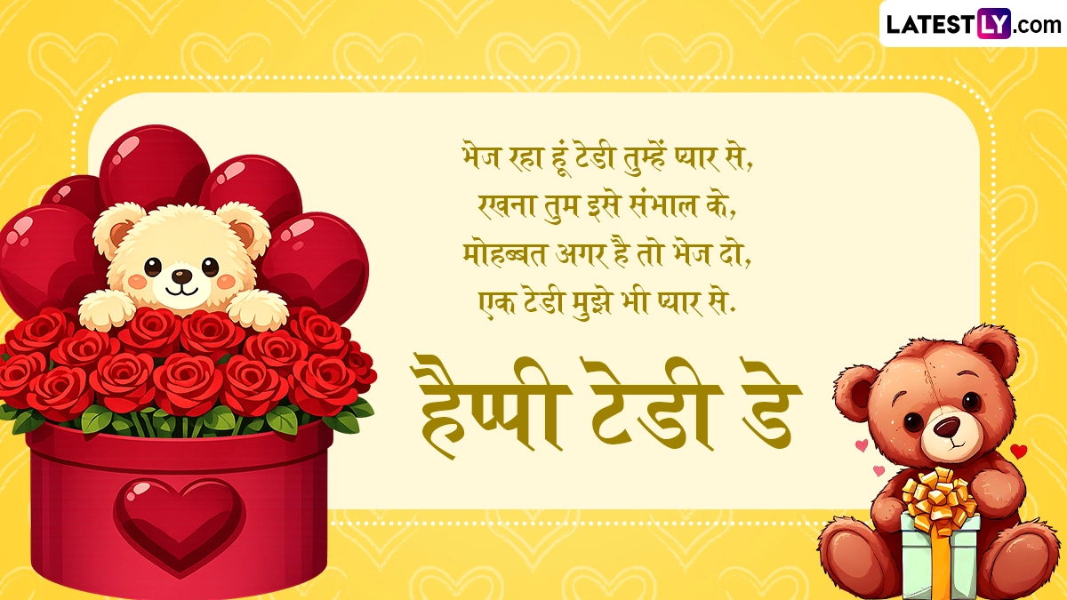 Teddy Day 2026 Messages in Hindi: फरवरी का महीना आते ही चारों तरफ प्यार और रोमांस की चर्चा शुरू हो जाती है. 7 फरवरी से शुरू हुए वैलेंटाइन वीक (Valentine's Week) का खुमार अब अपने चरम पर है. रोज डे, प्रपोज डे और चॉकलेट डे के बाद, आज यानी 10 फरवरी को कपल्स 'टेडी डे' (Teddy Day) मना रहे हैं. इस खास मौके पर प्रेमी अपनी प्रेमिका को एक प्यारा सा टेडी बियर गिफ्ट करके अपने दिल का हाल बयां करते हैं और अपने रिश्ते में मासूमियत और गर्माहट का संदेश देते हैं. भले ही टेडी डे को प्रेमी-प्रेमिकाओं के दिन के तौर पर देखा जाता है, लेकिन आज के समय में दोस्त और परिवार के सदस्य भी एक-दूसरे को टेडी गिफ्ट करते हैं.