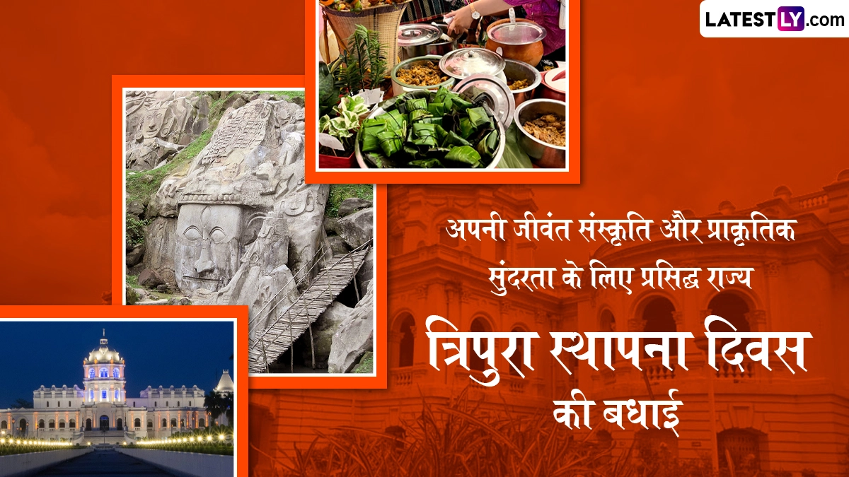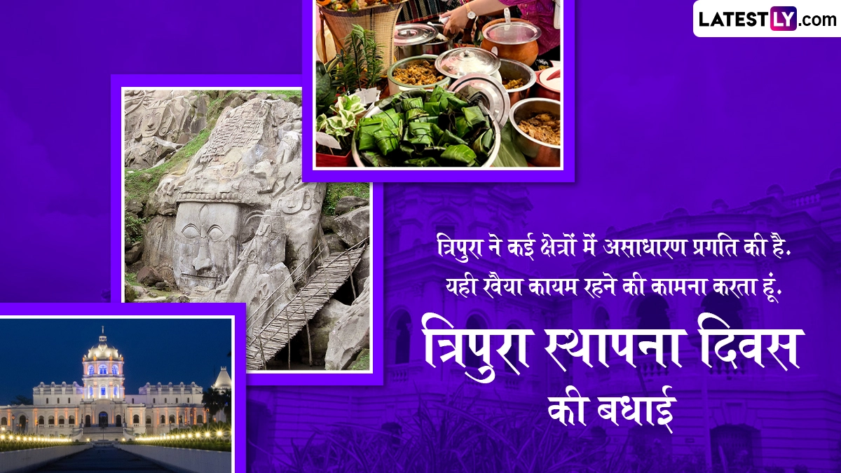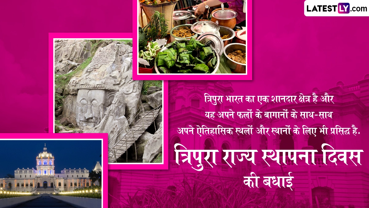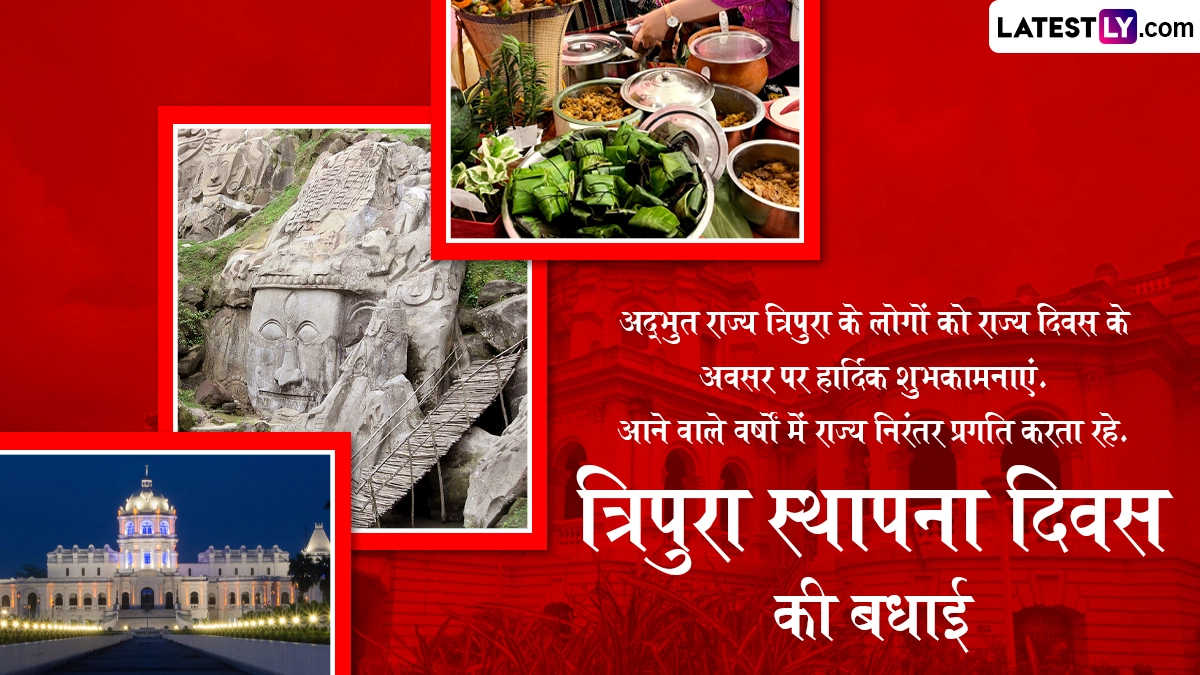 त्रिपुरा राज्य स्थापना दिवस (Tripura Statehood Day) 2025 का जश्न मनाने के लिए हम लेकर आए हैं ये शानदार मैसेजेस, विशेज, वॉट्सऐप स्टेटस, फोटो एसएमएस, जीआईएफ ग्रीटिंग्स, जिन्हें आप अपनों के साथ शेयर करके उन्हें इस दिवस की बधाई दे सकते हैं. इस दिन को सेलिब्रेट करने के लिए राज्य में विभिन्न सांस्कृतिक कार्यक्रमों का आयोजन किया जाता है.