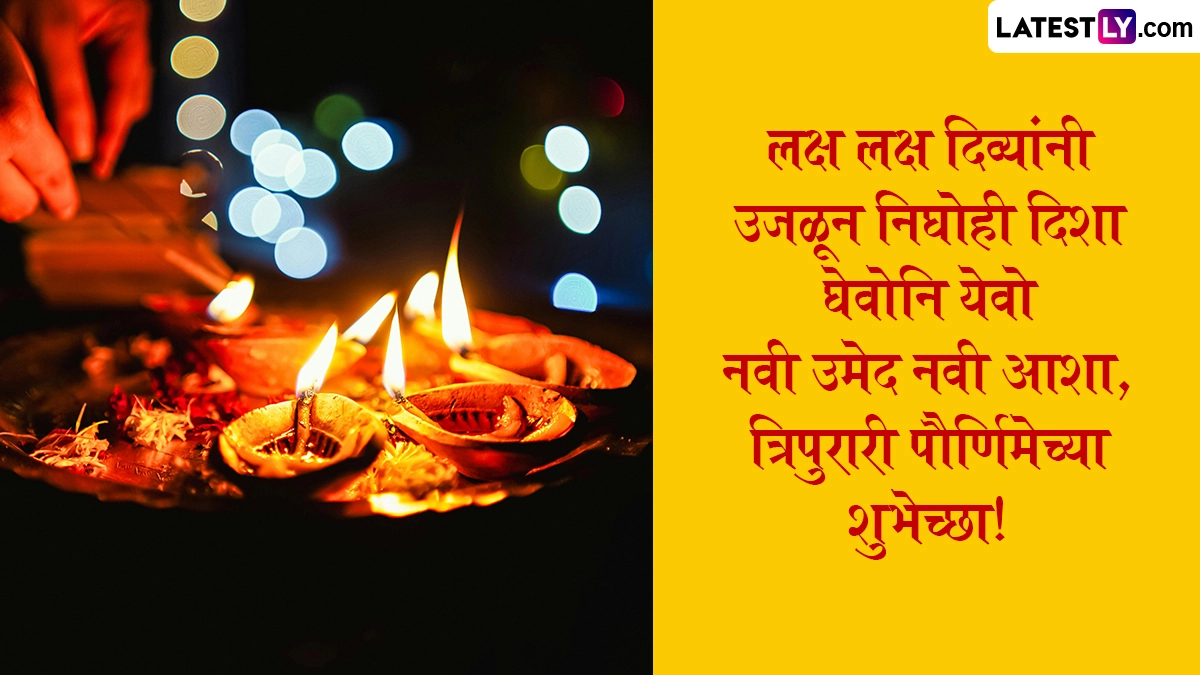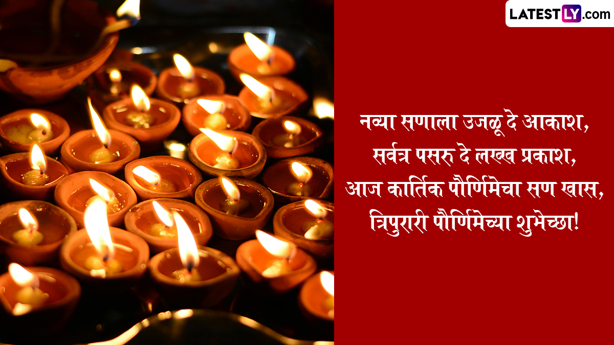 Tripurari Pournima 2025 Messages In Marathi: त्रिपुरारी पुर्णिमा (Tripurari Pournima) को कार्तिक पूर्णिमा (Kartik Purnima) या देव दीपावली (Dev Deepawali) भी कहा जाता है. कार्तिक महीने की पूर्णिमा को देव दीपावली मनाई जाती है. हिंदू पंचांग के अनुसार, कार्तिक पूर्णिमा 5 नवंबर 2025 को मनाई जाएगी. इसका शुभ मुहूर्त 4 नवंबर सुबह 10:36 बजे से शुरू होकर 5 नवंबर 2025 को शाम 6:48 बजे तक रहेगा. हिंदू धर्म में उदयातिथि को माना जाता है. इसलिए, त्रिपुरारी पूर्णिमा 5 नवंबर को मनाई जाएगी. त्रिपुरारी पुर्णिमा के दिन भगवान शंकर और विष्णु की पूजा की जाती है. पौराणिक कथाओं के अनुसार, कार्तिक पूर्णिमा के दिन भगवान शिव ने त्रिपुरासुर नामक राक्षस का वध किया था. त्रिपुरासुर ने देवताओं को बहुत परेशान किया था. तब सभी देवताओं ने भगवान शिव से त्रिपुरासुर का अंत करने की प्रार्थना की.