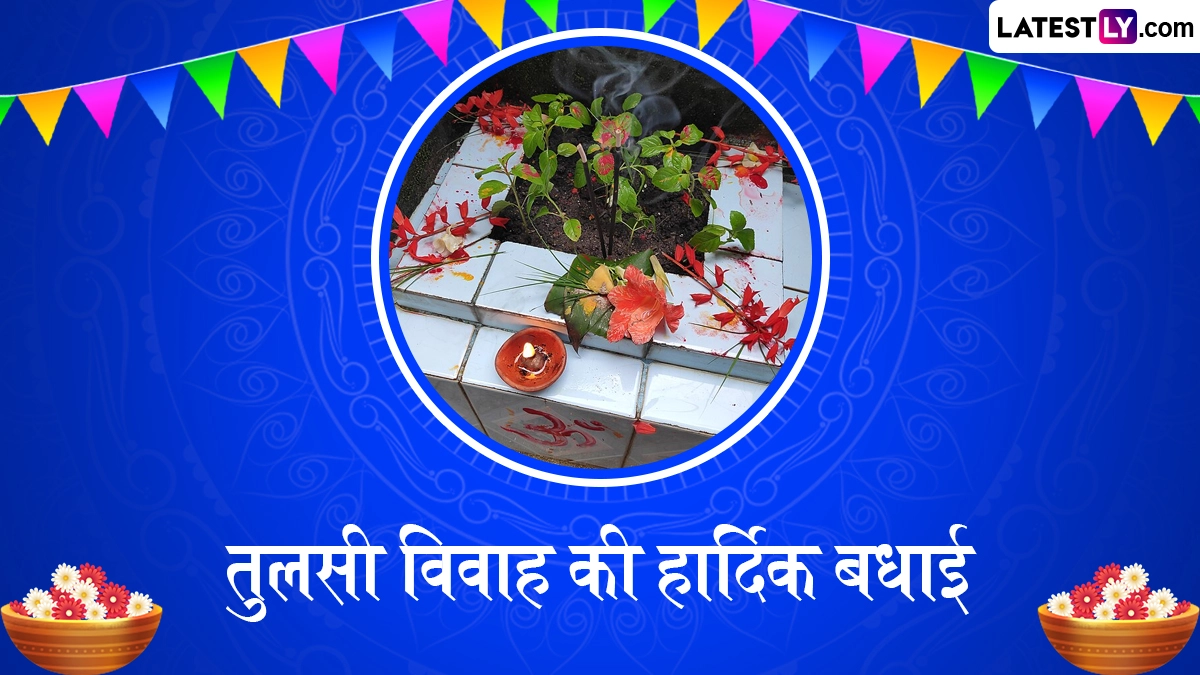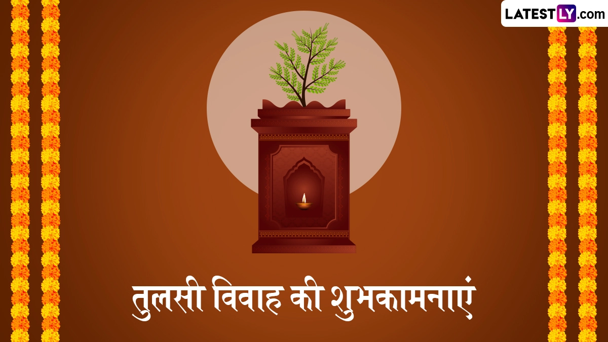 Tulsi Vivah 2025 Greetings in Hindi: हिंदू धर्म में तुलसी के पौधे का बहुत महत्व बताया जाता है. तुलसी को माता लक्ष्मी (Mata Lakshmi) का स्वरूप माना जाता है और कहा जाता है कि जिस घर में तुलसी का पौधा होता है, उस घर में सदैव सुख-समृद्धि और खुशहाली बनी रहती है. वहीं हिंदू पंचांग के अनुसार, हर साल कार्तिक महीने के शुक्ल पक्ष की द्वादशी तिथि को तुलसी विवाह (Tulsi Vivah) का आयोजन किया जाता है, लेकिन कई जगहों पर देवउठनी एकादशी (Dev Uthani Ekadashi) से लेकर कार्तिक पूर्णिमा तक तुलसी विवाह का उत्सव धूमधाम से मनाया जाता है. इस साल 2 नवंबर 2025 को तुलसी विवाह का पर्व मनाया जा रहा है. तुलसी विवाह के पर्व को हिंदू धर्म के सर्वाधिक शुभ दिनों में से एक माना जाता है, जो भगवान विष्णु (Bhagwan Vishnu) के शालिग्राम (Shaligram) स्वरूप और माता तुलसी (Mata Tulsi) को समर्पित है. तुलसी विवाह के दिन जगत के पालनहार भगवान विष्णु के शालिग्राम स्वरूप का विवाह माता तुलसी के साथ किया जाता है और इस पर्व को बहुत धूमधाम से मनाया जाता है.