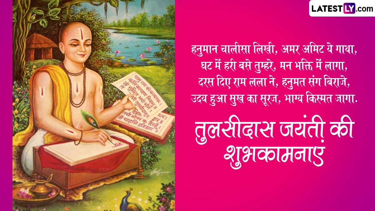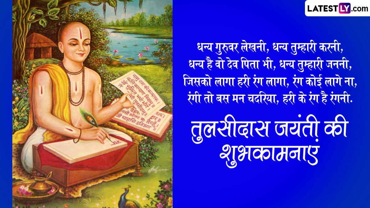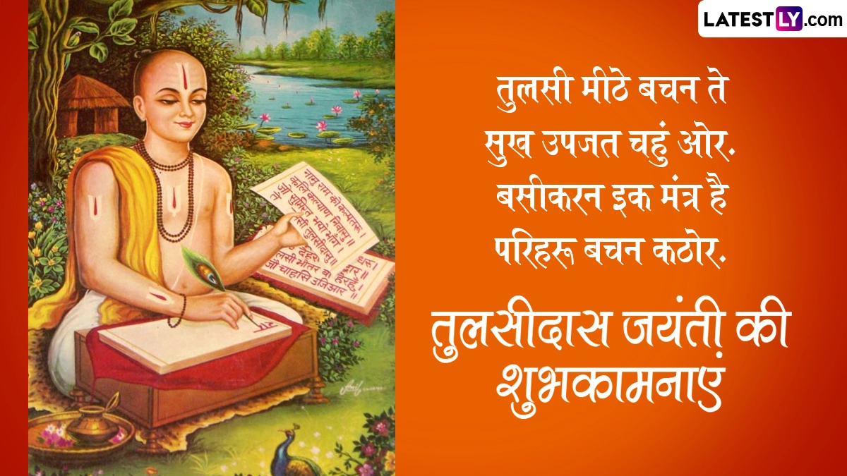गोस्वामी तुलसीदास जी ने अपने जीवनकाल में अनेकों ग्रंथों और पुस्तकों की रचना की थी, लेकिन उन्होंने भगवान राम के जन्म से राज्याभिषेक तक की घटनाओं को दोहा, चौपाई और छंद के जरिए रामचरित मानस जैसे महाकाव्य के रूप में लोगों तक पहुंचाया. गोस्वामी तुलसीदास जी की जयंती पर इन हिंदी मैसेजेस, वॉट्सऐप विशेज, कोट्स, फेसबुक ग्रीटिंग्स को भेजकर अपनों को शुभकामनाएं दे सकते हैं.