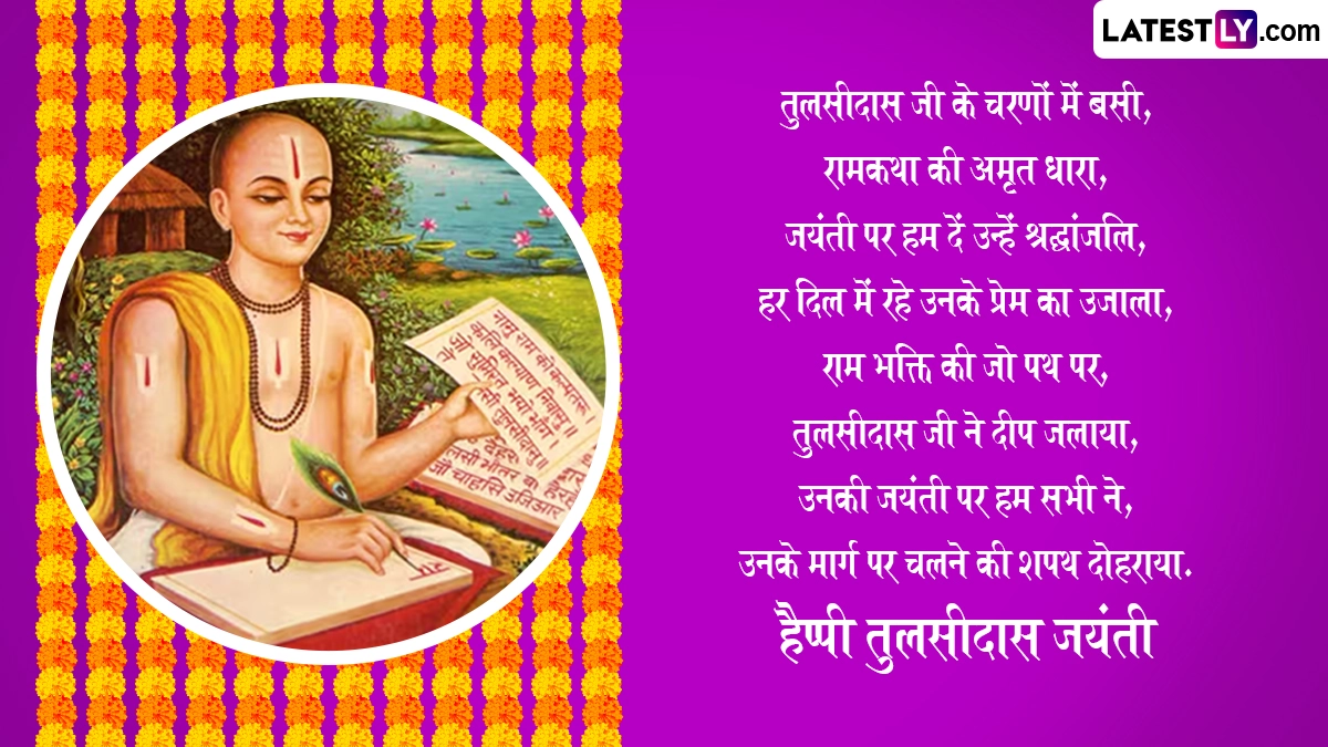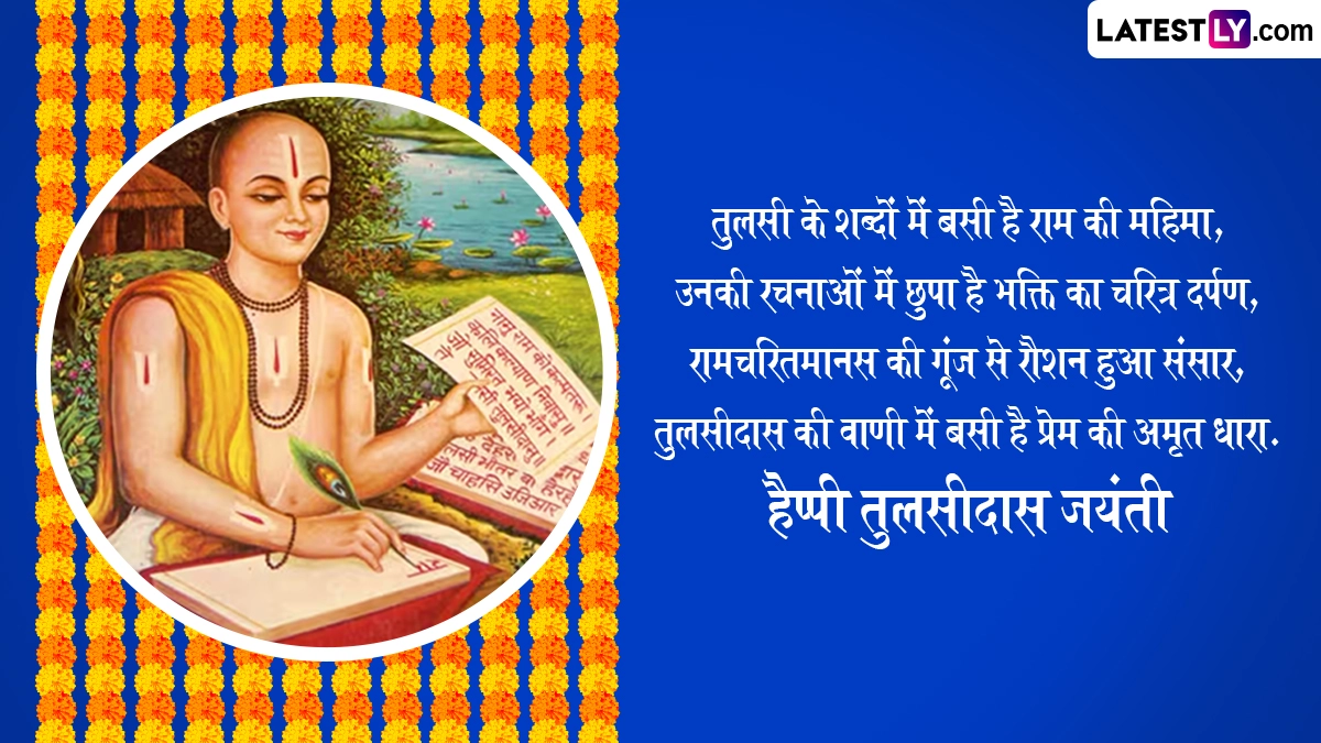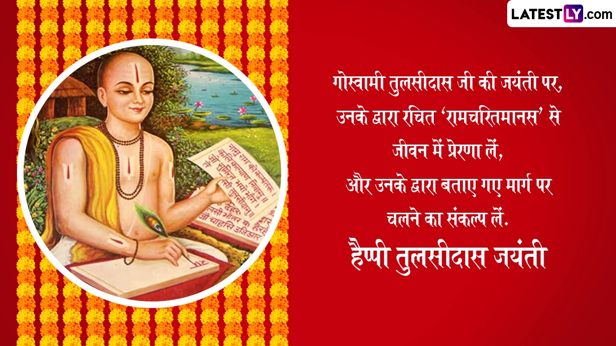 Tulsidas Jayanti 2025 Messages in Hindi: मर्यादापुरुषोत्तम भगवान श्रीराम के भक्त, महाकवि और संत गोस्वामी तुलसीदास जी (Goswami Tulsidas) की इस साल 528वीं जयंती मनाई जा रही है. हिंदू पंचांग के अनुसार, गोस्वामी तुलसीदास जी की जयंती (Goswami Tulsidas Jayanti) हर साल सावन मास के शुक्ल पक्ष की सप्तमी तिथि को मनाई जाती है, जबकि ग्रेगोरियन कैलेंडर के हिसाब से इस साल 31 जुलाई 2025 को तुलसीदास जयंती मनाई जा रही है. अपनी रचनाओं के माध्यम से भगवान श्रीराम के जीवन से लोगों को अवगत कराने वाले महाकवि गोस्वामी तुलसीदास जी का जन्म संवत 1554 में सावन मास के शुक्ल पक्ष की सप्तमी को उत्तर प्रदेश (Uttar Pradesh) के चित्रकूट (Chitrakoot) स्थित राजापुर गांव में हुआ था. उनके पिता का नाम आत्माराम दुबे और माता का नाम हुलसी थी. उन्होंने अपने जीवनकाल में अनेकों ग्रंथों और पुस्तकों की रचना की थी, लेकिन उन्होंने भगवान राम के जन्म से राज्याभिषेक तक की घटनाओं को दोहा, चौपाई और छंद के जरिए रामचरितमानस जैसे महाकाव्य के रूप में लोगों तक पहुंचाया.