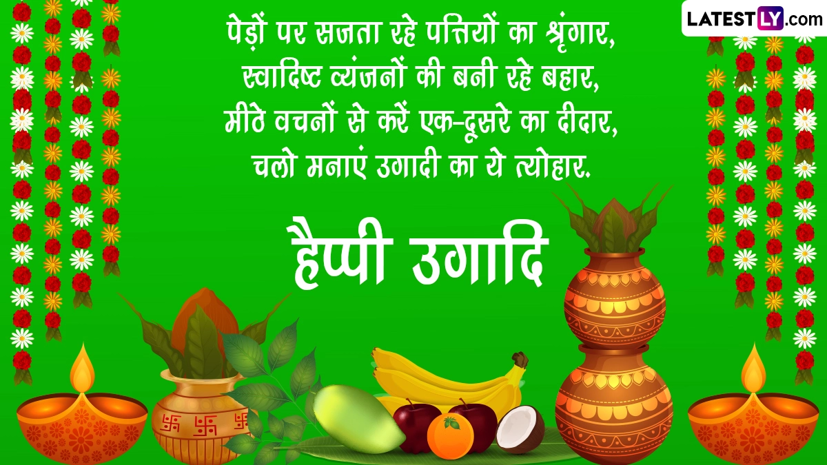 कहा जाता है कि चैत्र शुक्ल प्रतिपदा के दिन ही सृष्टि के रचयिता भगवान ब्रह्मा ने सृष्टि की रचना की थी, इसलिए इस दिन उनकी पूजा की जाती है. उगादि के त्योहार को दक्षिण भारत के लोग अपनी स्थानीय परंपराओं के हिसाब से विधिपूर्वक मनाते हैं. इस अवसर पर शुभकामना संदेशों का आदान-प्रदान किया जाता है. ऐसे में आप भी इन शानदार हिंदी विशेज, कोट्स, वॉट्सऐप मैसेजेस, फेसबुक ग्रीटिंग्स को भेजकर प्रियजनों को उगादि की शुभकामनाएं दे सकते हैं.
