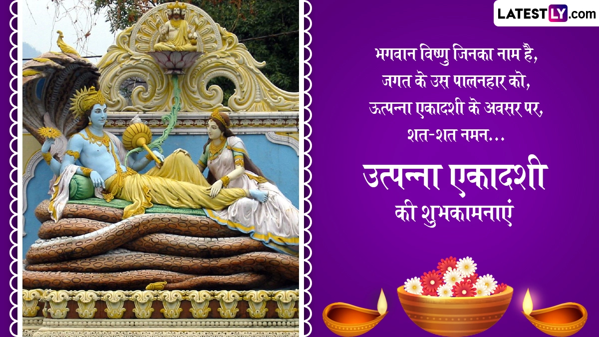 Utpanna Ekadashi 2025 Wishes in Hindi: हिंदू धर्म में एकादशी का काफी महत्व बताया जाता है और यह तिथि जगत के पालनहार भगवान विष्णु (Bhagwan Vishnu) को अत्यंत प्रिय है. हर महीने 2 एकादशी तिथियां पड़ती हैं और हर एकादशी का अपना एक अलग महत्व होता है. देवउठनी एकादशी के बाद मार्गशीर्ष मास के कृष्ण पक्ष की एकादशी तिथि को उत्पन्ना एकादशी (Utpanna Ekadashi) का व्रत किया जाता है. ऐसी मान्यता है कि इस दिन श्रद्धा और नियमपूर्वक व्रत करने से भगवान विष्णु की विशेष कृपा प्राप्त होती है. साथ ही इस दिन श्रीहरि के साथ माता लक्ष्मी की पूजा करने से जीवन में सुख, शांति और समृद्धि का आगमन होता है. इस साल उत्पन्ना एकादशी का व्रत 15 नवंबर 2025 को किया जा रहा है.