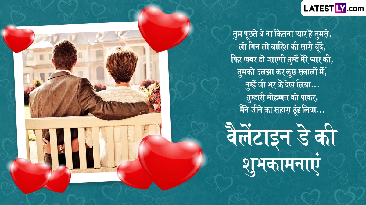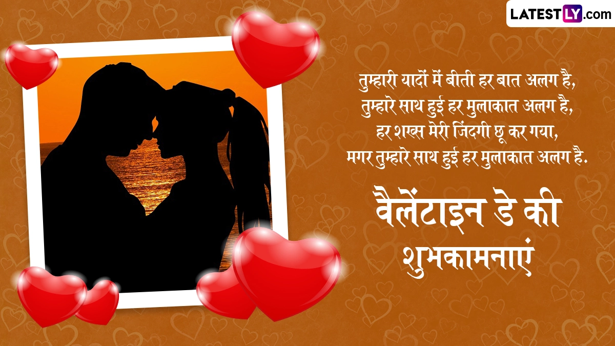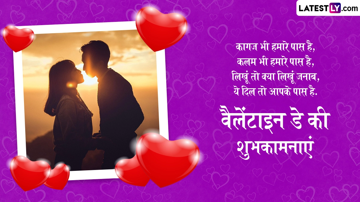 Valentine’s Day 2025 Wishes in Hindi: 'प्यार करने वाले कभी डरते नहीं, जो डरते हैं वो प्यार करते नहीं…' जी हां, फरवरी महीने की शुरुआत होते ही दुनिया भर के कपल्स पर प्यार का सुरूर चढ़ने लगता है और मोहब्बत की खुशबू फिजाओं में महकने लगती है. फरवरी महीने का दुनिया भर के कपल्स को बेसब्री से इंतजार रहता है, क्योंकि इसी महीने 7 फरवरी से 14 फरवरी तक वैलेंटाइन वीक (Valentine's Week) मनाया जाता है. रोज डे (Rose Day) इस सप्ताह की शुरुआत होती है, जबकि वैलेंटाइन वीक के आखिरी दिन वैलेंटाइन डे (Valentine’s Day) मनाया जाता है. वैलेंटाइन डे कपल्स के लिए प्यार का महापर्व होता है, इसलिए इसे लेकर उनका जोश और उत्साह देखते ही बनता है. वैलेंटाइन डे के दिन अपने पार्टनर का दिल जीतने और उनसे अपनी मोहब्बत का इजाहर करने के लिए हर कोई खास तैयारी करता है.