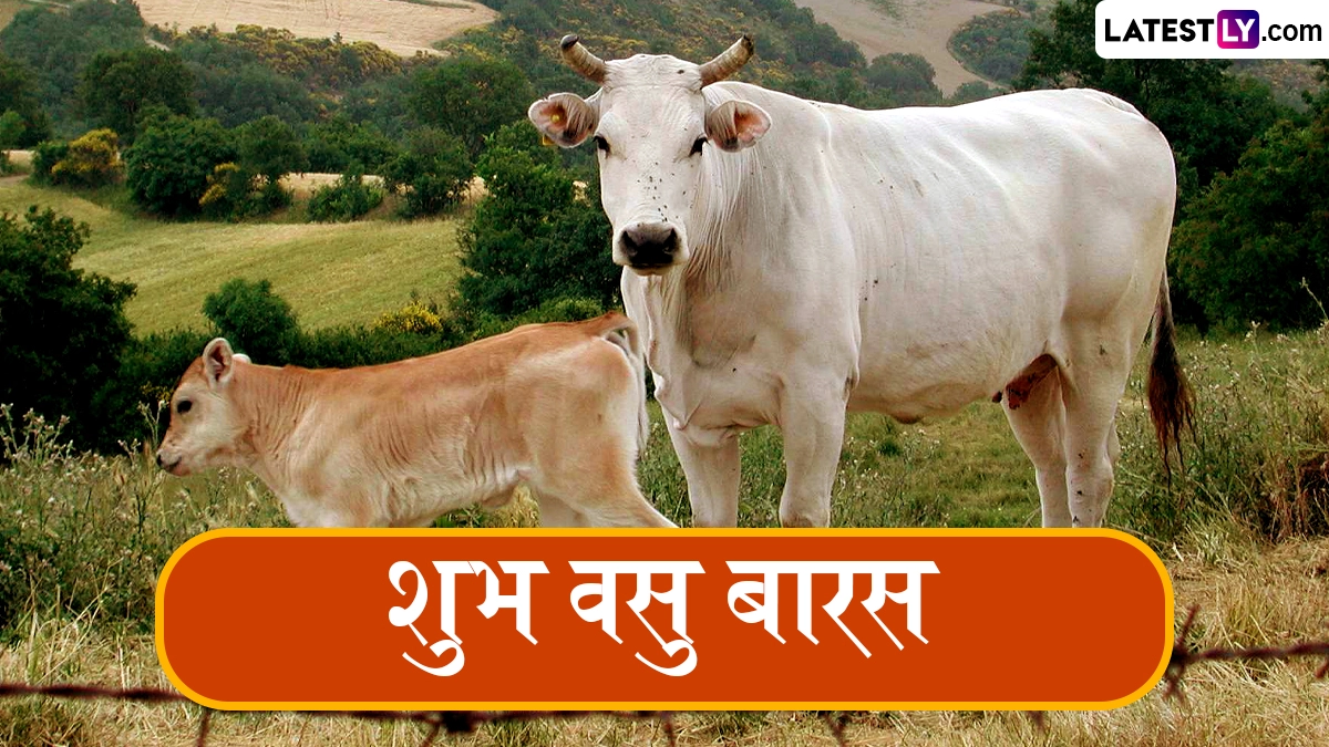 गोवत्स द्वादशी यानी वसु बारस के दिन गाय और बछड़ों को सजाकर उनकी विशेष पूजा-अर्चना की जाती है और उनके प्रति सम्मान जाहिर किया जाता है. इस दिन पवित्र पशु को चना और अंकुरित मूंग जैसी कई चीजें खिलाई जाती हैं, साथ ही पर्व की शुभकामनाएं दी जाती हैं. ऐसे में इस अवसर पर आप इन शानदार ग्रीटिंग्स, वॉट्सऐप स्टिकर्स, एचडी इमेजेस, फोटो विशेज, वॉलपेपर्स के जरिए वसु बारस की बधाई दे सकते हैं.