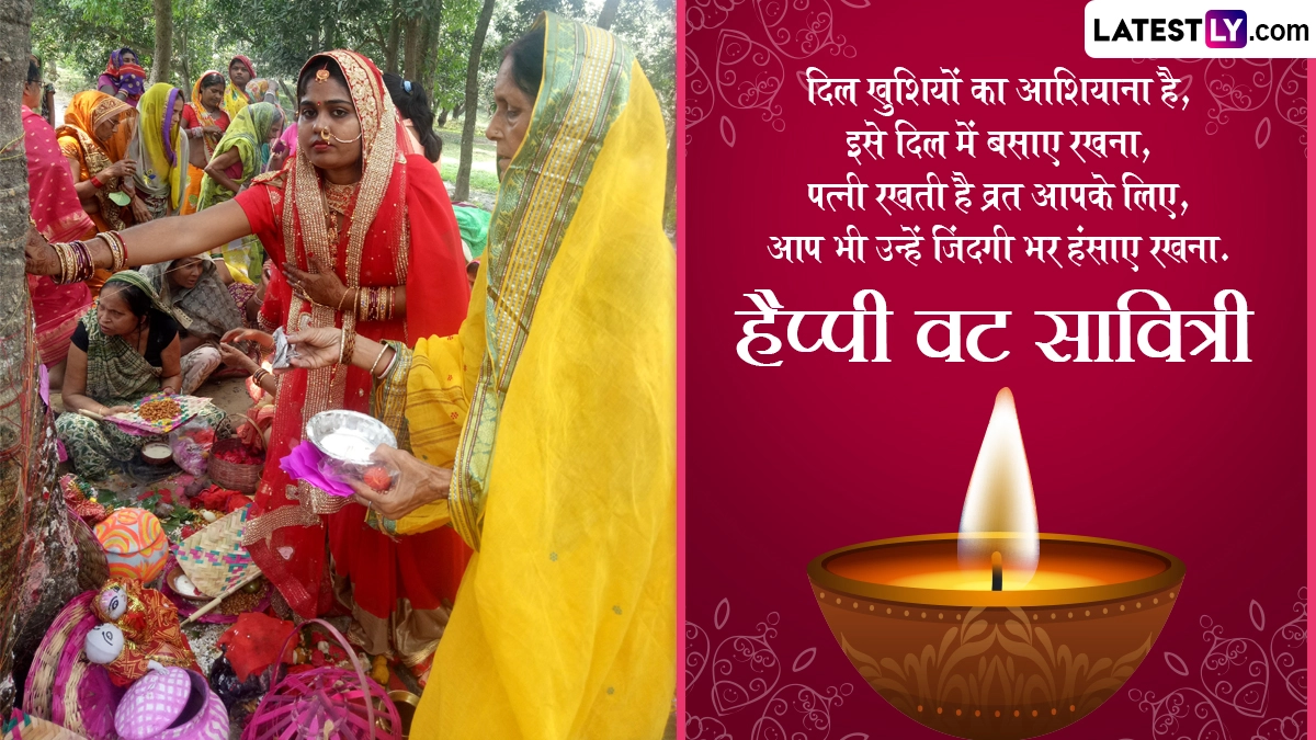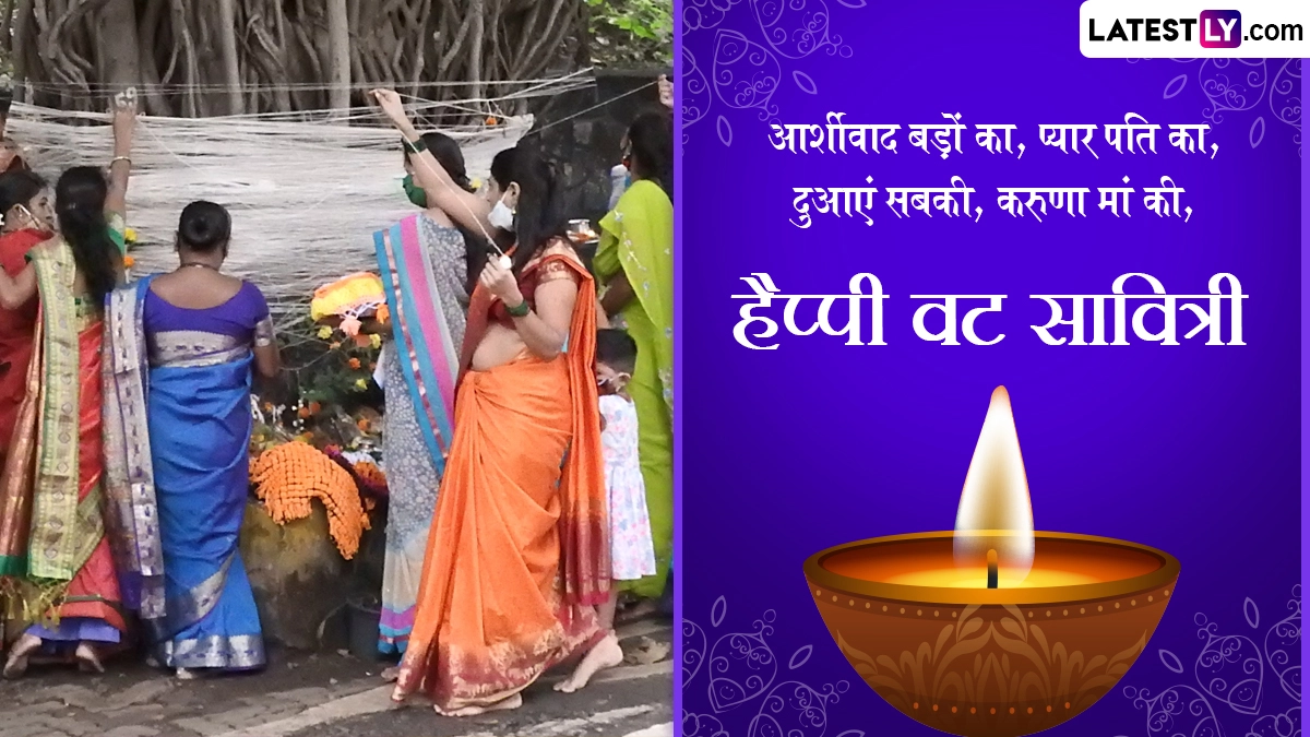 वट सावित्री के दिन सुबह स्नान के बाद महिलाएं सज-संवरकर वट वृक्ष के नीचे सावित्री, सत्यवान और यमराज की पूजा करती हैं. पूजन के दौरान वट वृक्ष की जड़ में जल, धूप-दीप और मिष्ठान्न अर्पित किए जाते हैं. हाथ में भीगे चने लेकर सावित्री-सत्यवान की कथा सुनी जाती है और शुभकामना संदेशों का आदान-प्रदान किया जाता है. इस अवसर पर आप इन हिंदी मैसेजेस, वॉट्सऐप विशेज, कोट्स, जीआईएफ ग्रीटिंग्स, एचडी इमेजेस को भेजकर हैप्पी वट सावित्री कह सकते हैं.