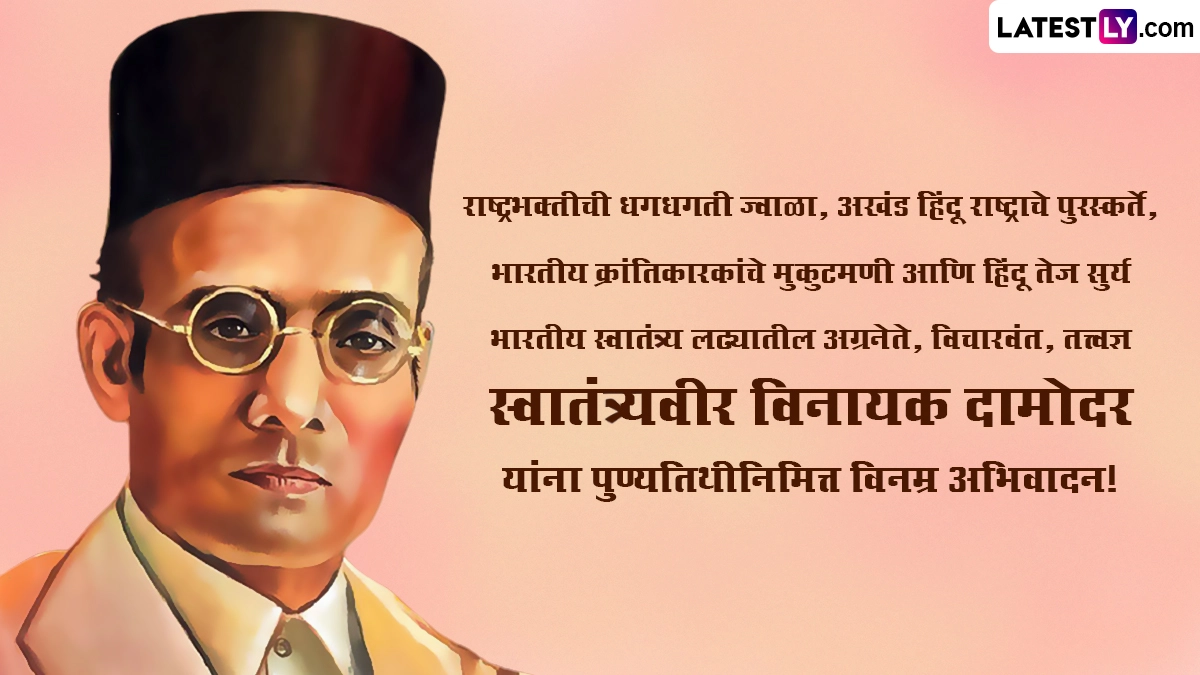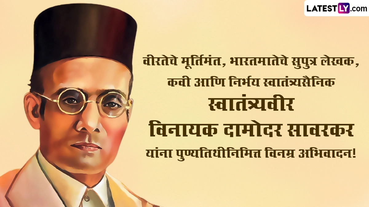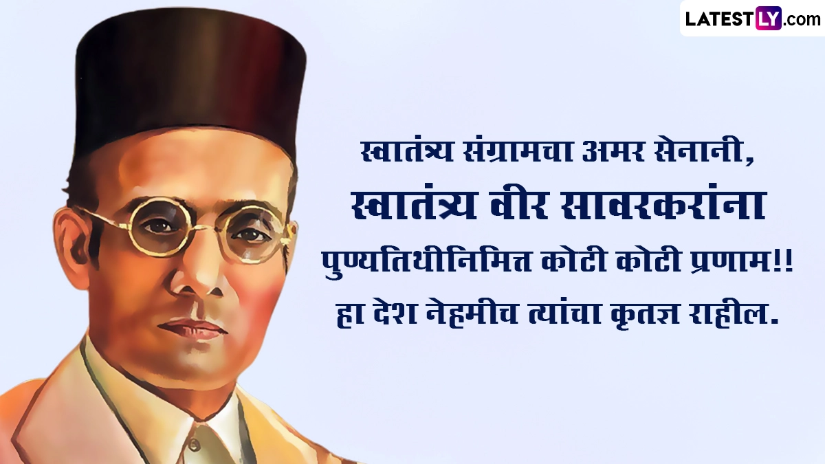 Veer Savarkar Punyatithi 2024 Messages in Marathi: भारत के वीर स्वतंत्रता सेनानियों में शुमार वीर सावरकर (Veer Savarkar) का निधन 26 फरवरी 1966 को मुंबई में हुआ था, इसलिए हर साल 26 फरवरी को उनकी पुण्यतिथि (Veer Savarkar Punyatithi) मनाई जाती है. उनका जन्म 28 मई 1883 को महाराष्ट्र (Maharashtra) के नासिक जिले (Nashik) में स्थित भागुर गांव में हुआ था. उनका पूरा नाम विनायक दामोदर सावरकर (Vinayak Damodar Savarkar) था. बताया जाता है कि युवावस्था में वीर सावरकर ने मित्र मेला के नाम से एक युवा संगठन बनाया था, उनके साहस के लिए ही उन्हें वीर उपनाम दिया गया था. गणेश सावरकर ने सन 1909 में ब्रिटिश सरकार के मॉर्ले-मिंटो सुधारों का विरोध किया था, जिसमें वीर सावरकर ने भी उनका समर्थन किया था, जिसके बाद उन्हें 50 साल की सजा सुनाई गई थी.