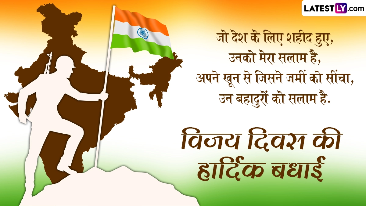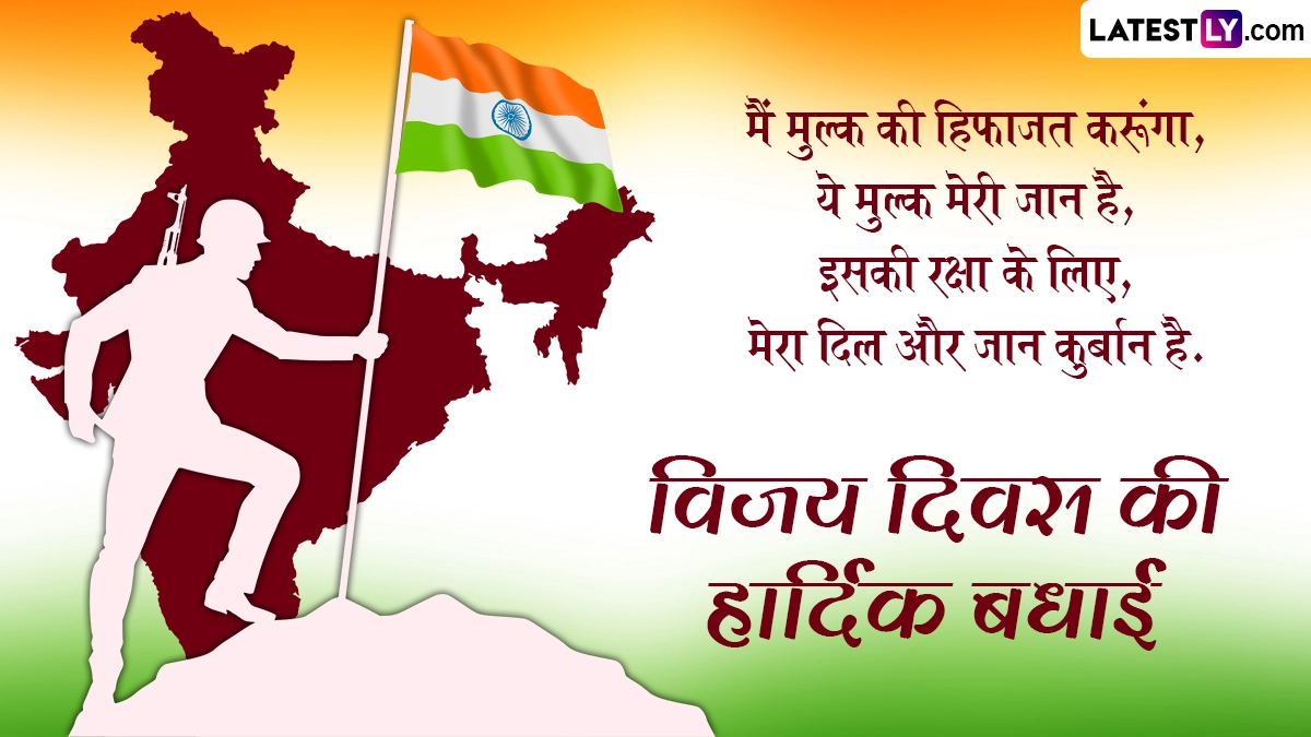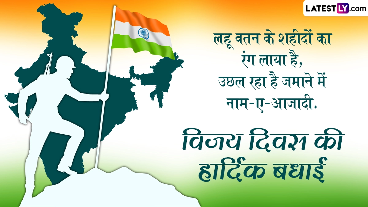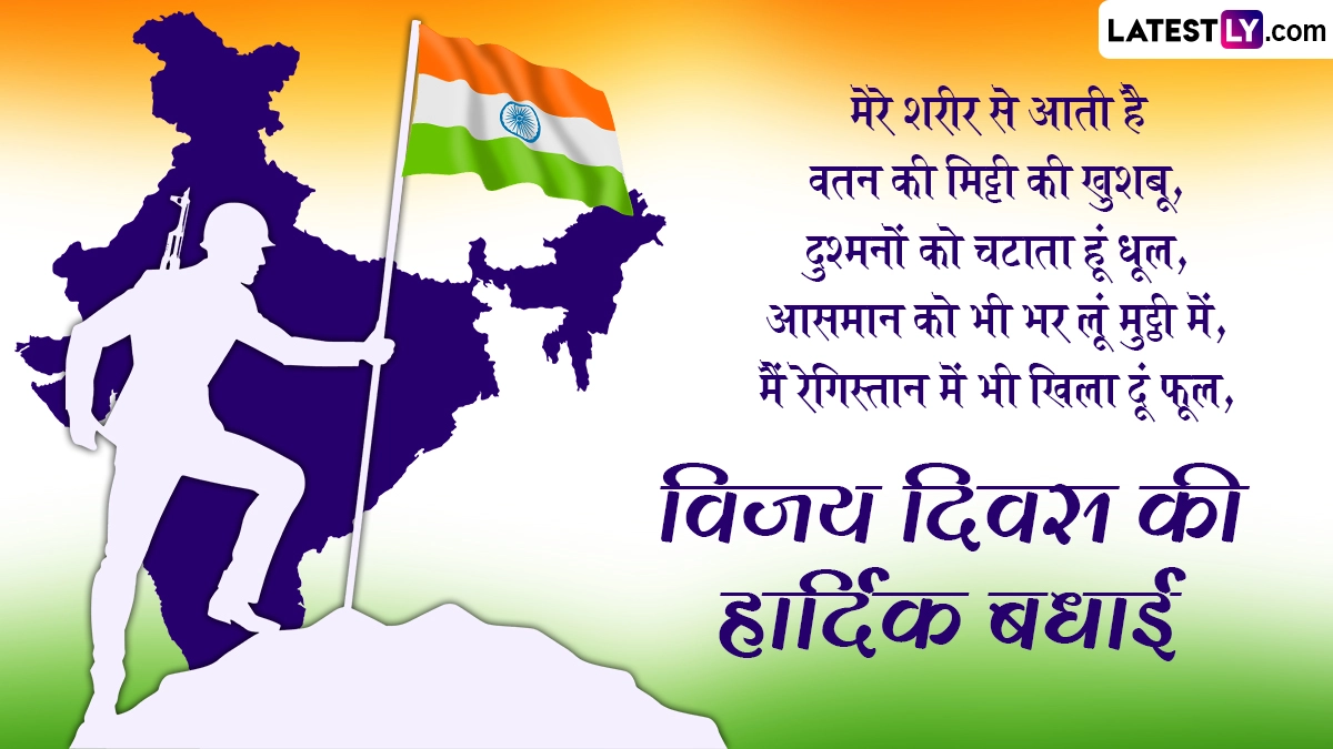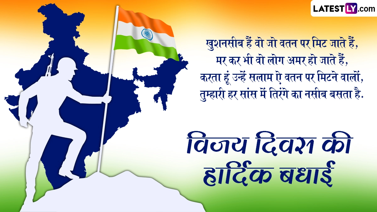 सन 1971 में पाकिस्तान पर निर्णायक जीत का जश्न मनाने के लिए हर साल 16 दिसंबर को भारत में विजय दिवस मनाया जाता है. 16 दिसंबर 1971 को पाकिस्तानी सेना के प्रमुख जनरल नियाजी ने 93,000 सैनिकों के साथ भारतीय सेना के सामने आत्मसमर्पण कर दिया था. इस अवसर आप इन शानदार हिंदी विशेज, वॉट्सऐप मैसेजेस, कोट्स, फेसबुक ग्रीटिंग्स को शेयर करके विजय दिवस की हार्दिक बधाई दे सकते हैं.