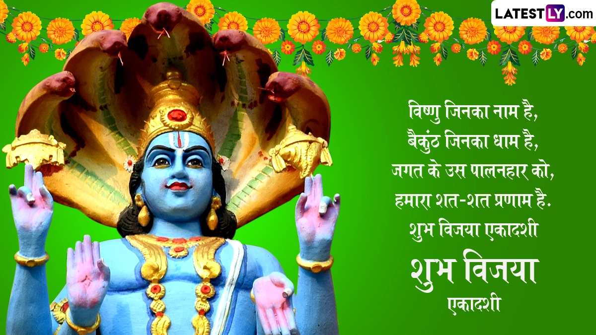 Vijaya Ekadashi 2025 Wishes in Hindi: विजया एकादशी (Vijaya Ekadashi) का व्रत हर साल फाल्गुन मास के कृष्ण पक्ष की एकादशी तिथि को किया जाता है. जगत के पालनहार भगवान विष्णु (Bhagwan Vishnu) को समर्पित इस एकादशी को विजय प्राप्ति के लिए महत्वपूर्ण माना जाता है. ऐसी मान्यता है कि जो व्यक्ति विजया एकादशी का व्रत करता है, उसे हर क्षेत्र में विजय मिलती है, जीवन में सुख-समृद्धि व सफलता आती है, इसके साथ ही मृत्यु के बाद मोक्ष की प्राप्ति होती है. इस दिन व्रत रखकर श्रीहरि की विधि-विधान से पूजा-अर्चना करने से मनुष्य की मानसिक स्थिति में सुधार होता है, उसके सारे कष्ट दूर होते हैं. इसके साथ ही आत्मशुद्धि और आस्था में वृद्धि होती है. अंग्रेजी कैलेंडर के हिसाब से इस साल 24 फरवरी 2025 को विजया एकादशी मनाई जा रही है.