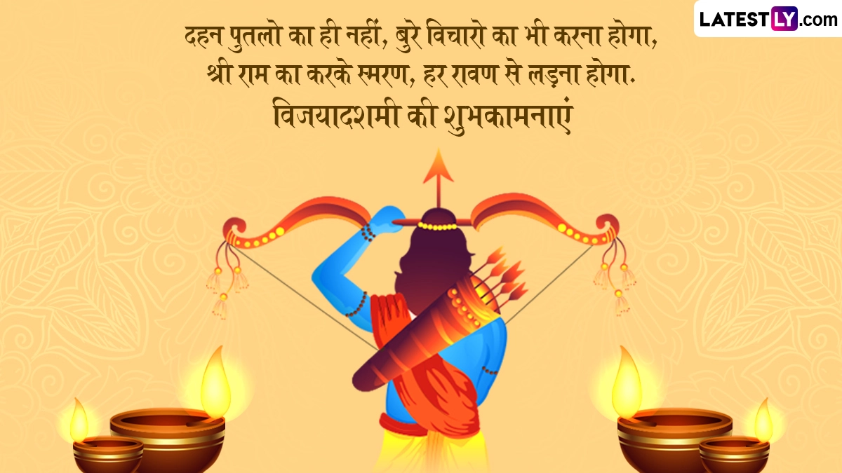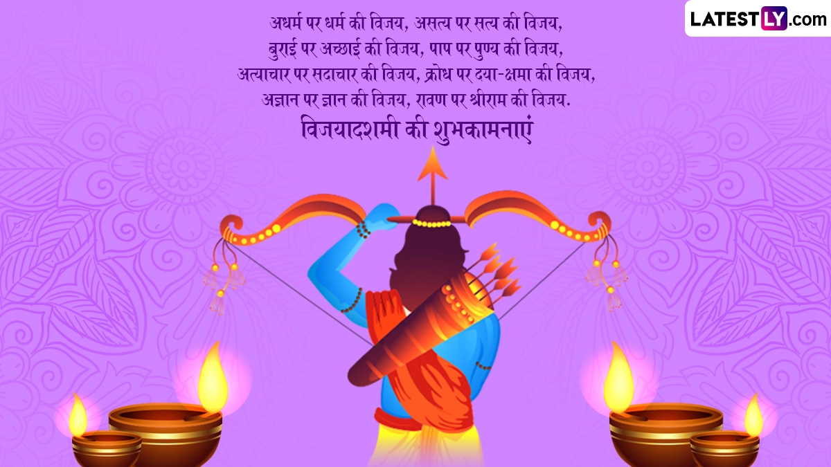 विजयादशमी यानी दशहरे के पर्व को बुराई पर अच्छाई और अधर्म पर धर्म की जीत के प्रतीक के तौर पर मनाया जाता है, जिसका हिंदू धर्म में विशेष महत्व बताया जाता है. इस अवसर पर शुभकामना संदेशों का आदान-प्रदान भी किया जाता है. ऐसे में आप भी इन शानदार हिंदी मैसेजेस, वॉट्सऐस विशेज, कोट्स, फेसबुक ग्रीटिंग्स के जरिए अपनों को विजयादशमी की प्यार भरी शुभकामनाएं दे सकते हैं.