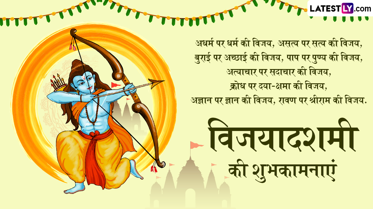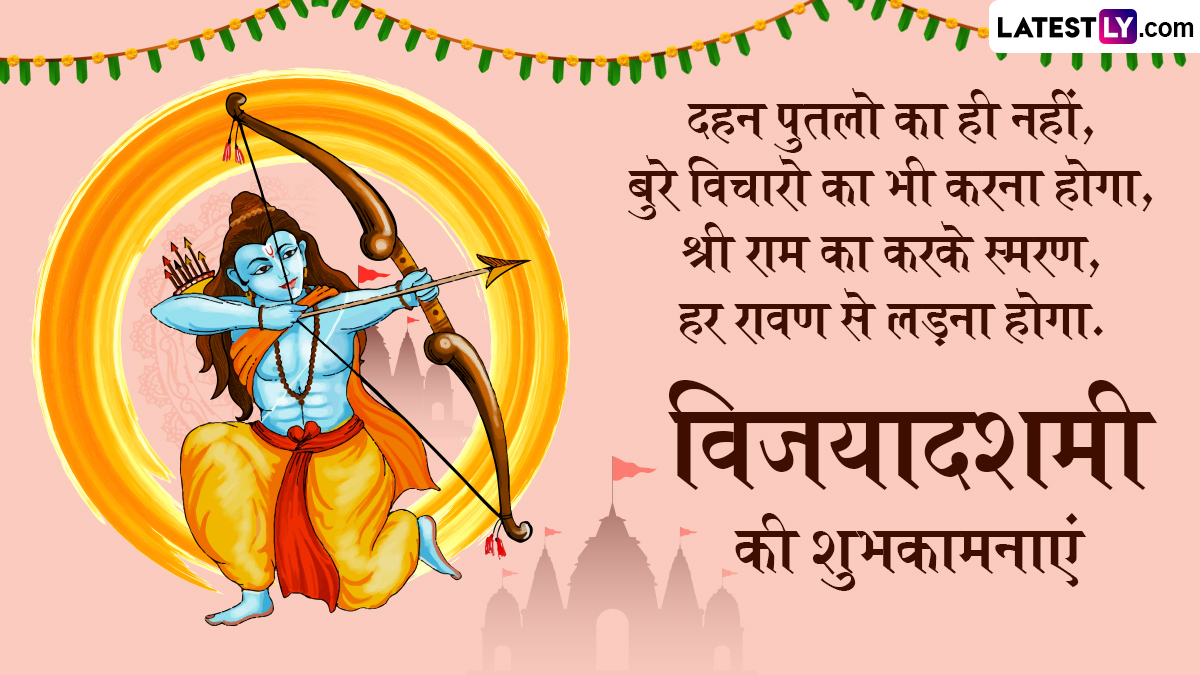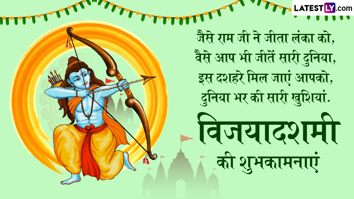 बुराई पर अच्छाई और अधर्म पर धर्म की जीत के प्रतीक के तौर पर विजयादशमी यानी दशहरे का त्योहार देशभर में मनाया जाता है. इस दिन जहां मां दुर्गा की प्रतिमाओं का विसर्जन किया जाता है तो वहीं कई जगहों पर रावण के पुतले का दहन किया जाता है. इस अवसर पर इन हिंदी मैसेजेस, कोट्स, वॉट्सऐप विशेज, फेसबुक ग्रीटिंग्स को भेजकर आप अपनों को विजयादशमी की शुभकामनाएं दे सकते हैं.